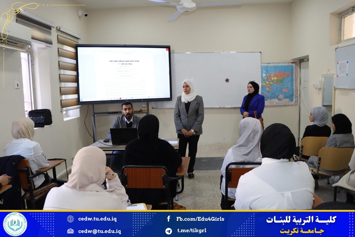 وبإشراف الاستاذ الدكتورة نجلاء عبدالحسين عليوي عميد كلية التربية للبنات ، تقيم وحدة التأهيل والتوظيف والمتابعة في كلية التربية للبنات بالتعاون مع قسم الجغرافية دورة تدريبية بعنوان الوصف الوظيفي للعمل في المنظمات غير الحكومية بين تنمية العلاقات وتطوير المهارات