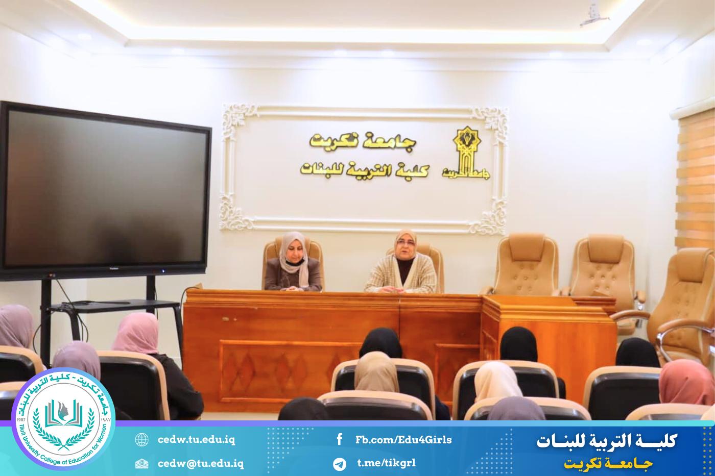 نظّم قسم العلوم التربوية والنفسية في كلية التربية للبنات بجامعة تكريت، وبالتعاون مع مركز التعليم المستمر، دورة علمية موسّعة بعنوان “التوافق الأسري أساس لاكتساب مهارات اجتماعية ناجحة”، وذلك على مدى يومين الاثنين والثلاثاء الموافق ١–٢ / ١٢ / ٢٠٢٥، على قاعة السمنار في الأقسام العلمية.