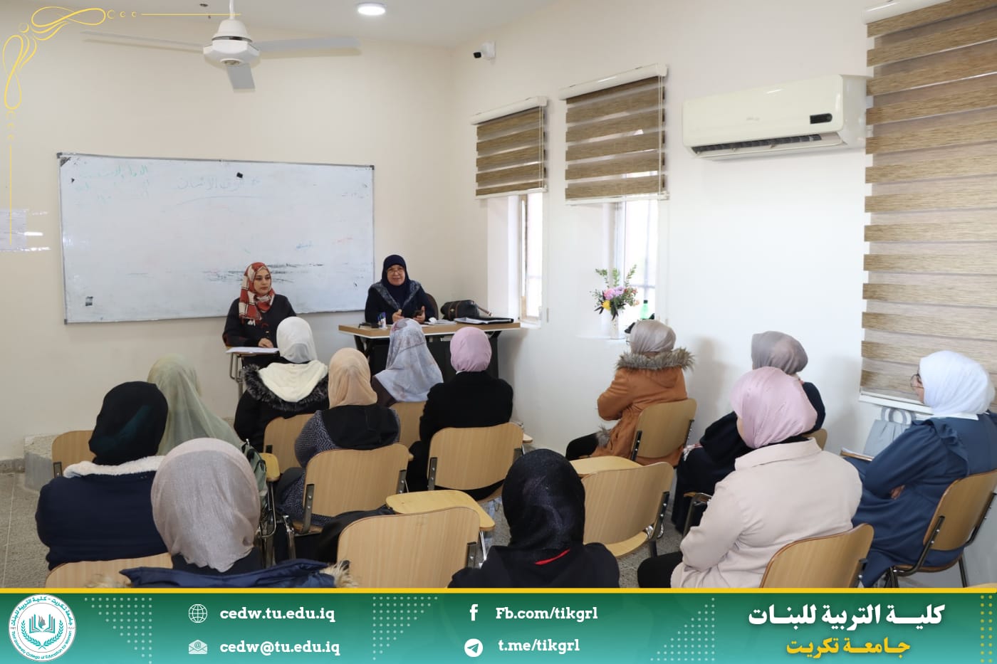 نظم قسم العلوم التربوية والنفسية في كلية التربية للبنات ، بالتعاون مع وحدة الإرشاد النفسي والتوجيه التربوي ، ندوة بعنوان خطر ظاهرة الغش على طالبات الجامعات وذلك يوم الخميس الموافق ٢٦ / ١٢ / ٢٠٢٤ على رحاب قاعة الدراسات الأولية قسم علوم القرآن والتربية الإسلامية