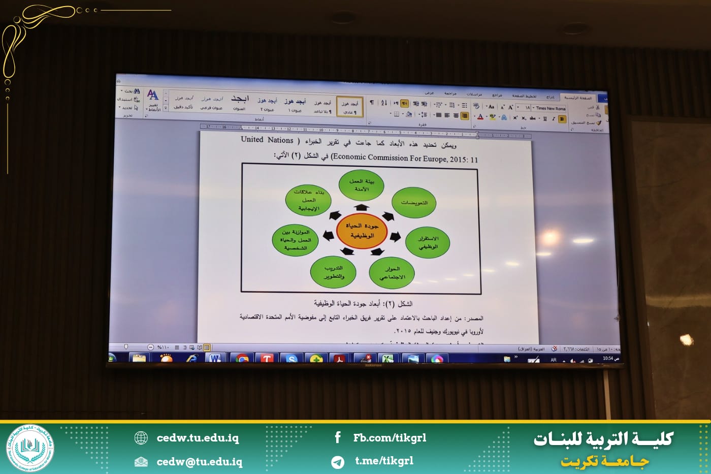 نظم قسم اللغة العربية في كلية التربية للبنات ، بالتعاون مع مركز التعليم المستمر، دورة تثقيفية بعنوان جودة الحياة الوظيفية وأهميتها وأبعادها ، وذلك ليومي الاربعاء والخميس الموافق ٢٥ - ٢٦ / ١٢ / ٢٠٢٤