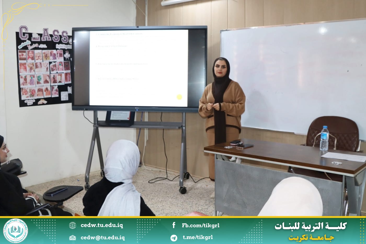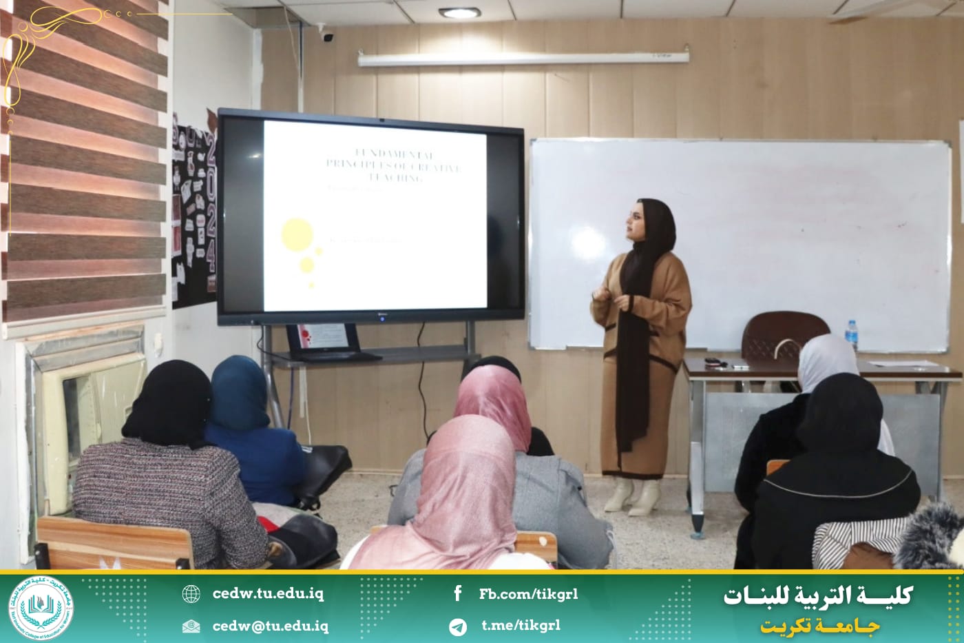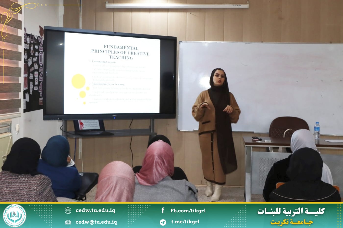 برعاية الأستاذ الدكتور وعد محمود رؤوف رئيس جامعة تكريت وبإشراف الأستاذ الدكتورة نجلاء عبدالحسين عليوي عميد كلية التربية للبنات والاستاذ المساعد الدكتور سياف عبد حسين مدير مركز التعليم المستمر وبالتعاون مع كلية التربية للبنات دورة تدريبية بعنوان : The Art of teaching: Creative Approaches for English Teaching يومي الاثنين والثلاثاء 2-3/ 12/ 2024 على قاعة المرحلة الرابعة في قسم اللغة الانجليزية