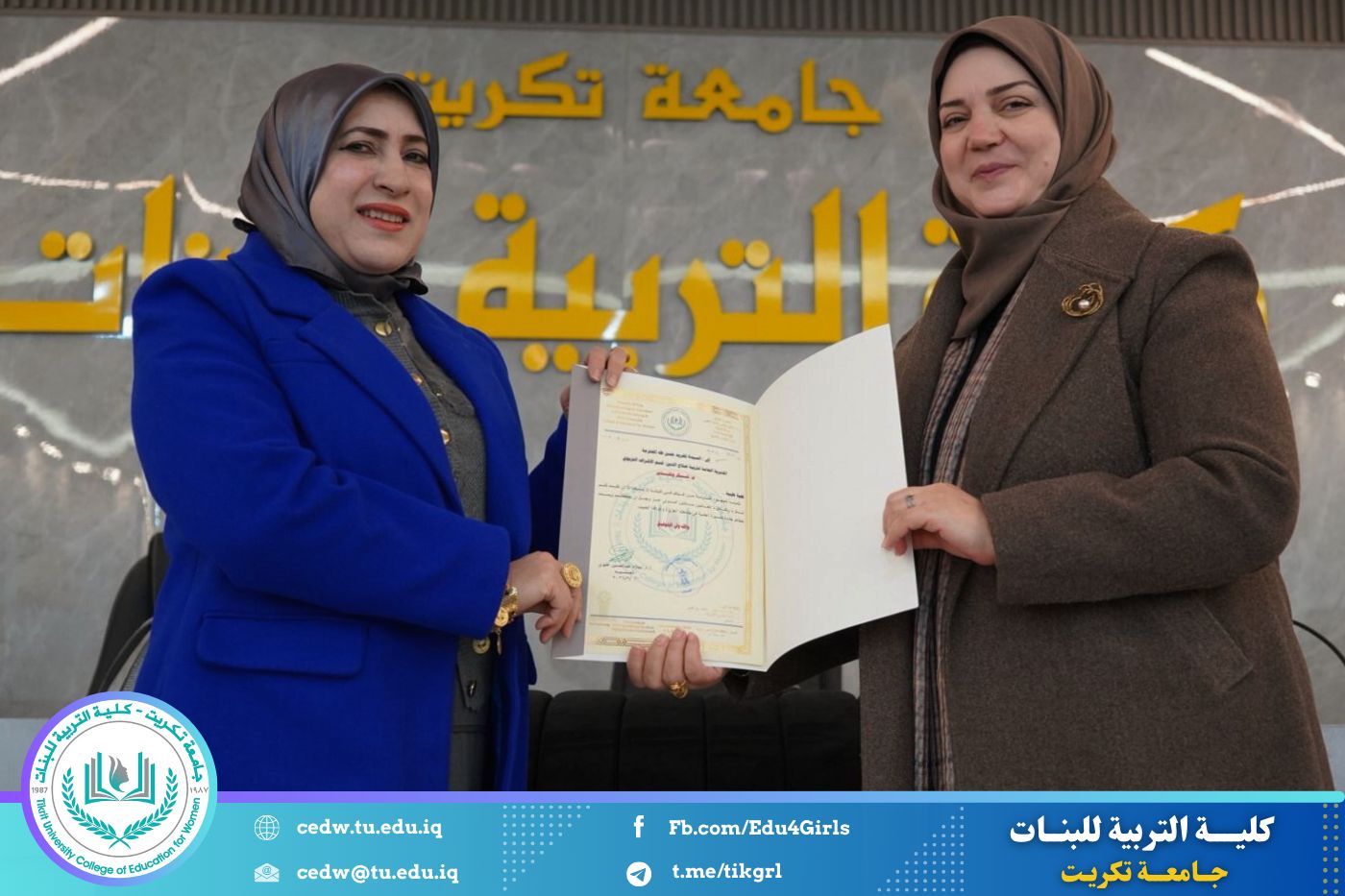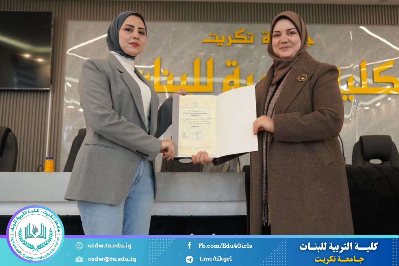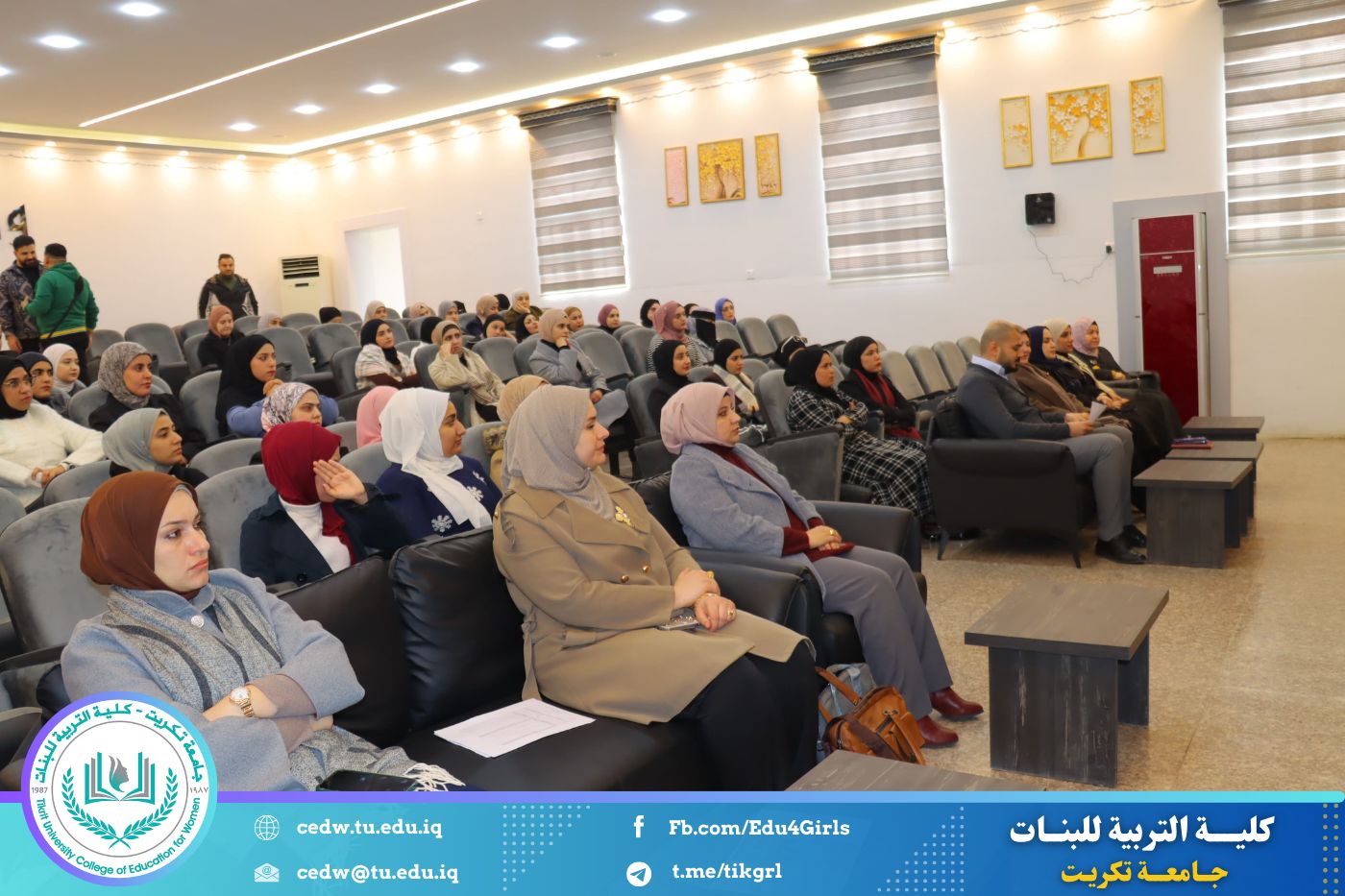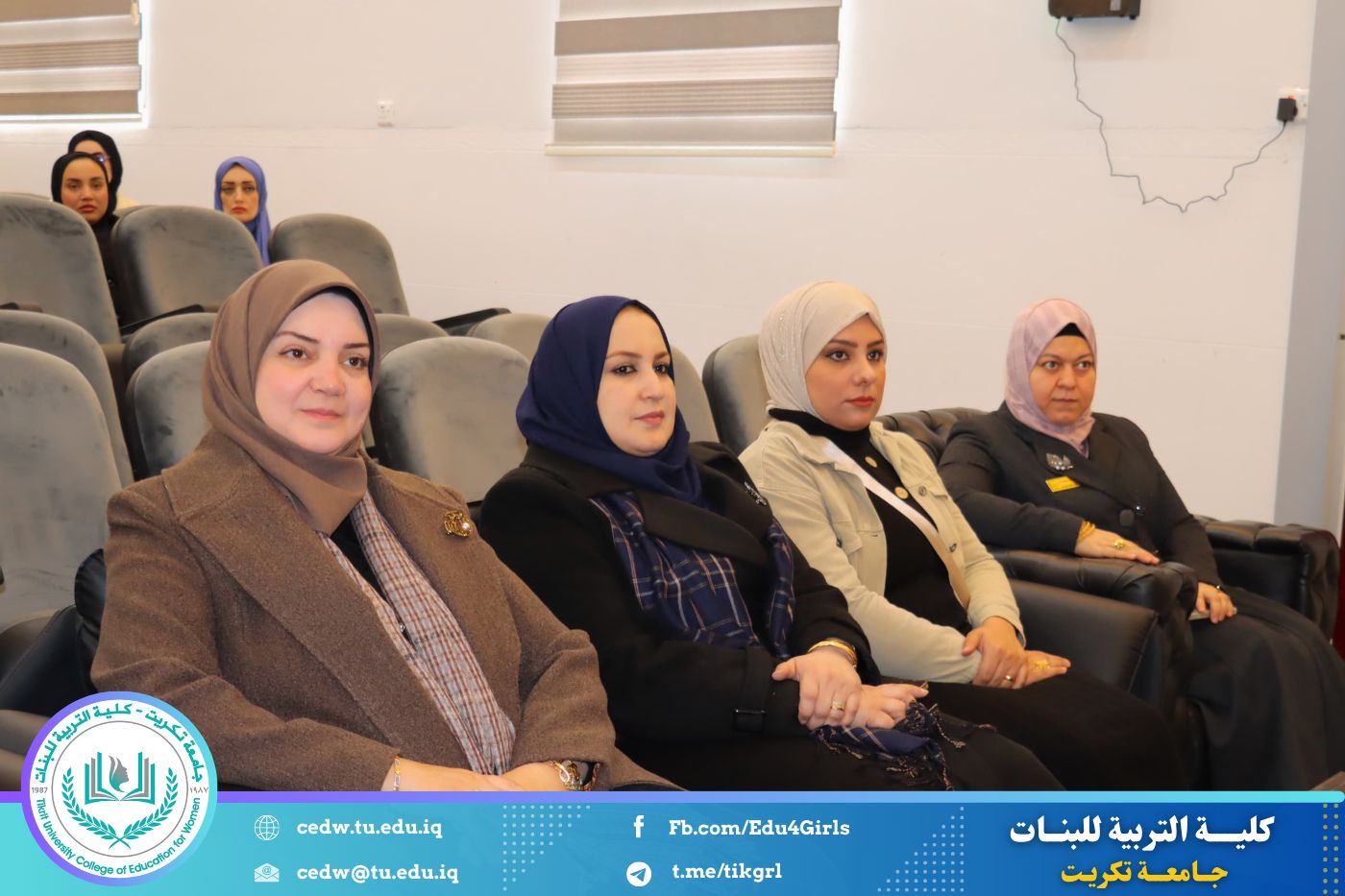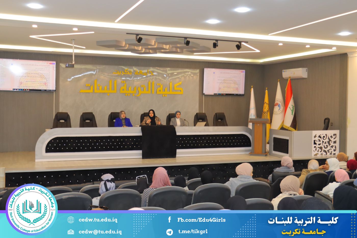 نظمت وحدة التأهيل والتوظيف والمتابعة في كلية التربية للبنات جامعة تكريت، وبالتعاون مع المديرية العامة لتربية صلاح الدين، ندوة علمية بعنوان «التطبيق التربوي في المدارس: بين آليات التنفيذ الفعّالة والتحديات الواقعية»، وذلك صباح يوم الأحد الموافق ٨ / ٢ / ٢٠٢٦، على قاعة المرحوم الأستاذ الدكتور جايد زيدان.