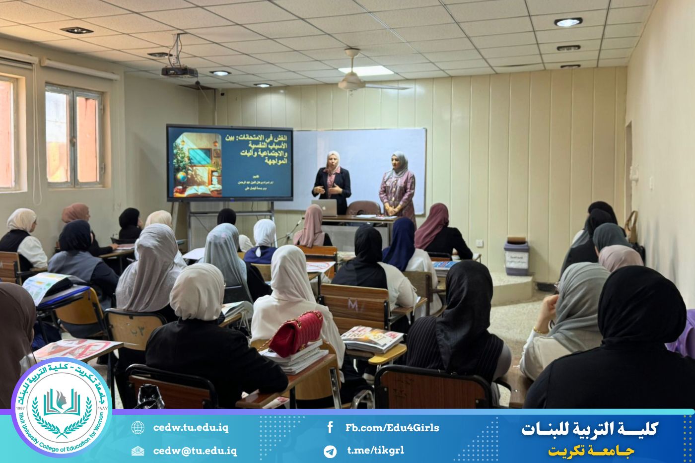نظّم قسم اللغة الإنكليزية بالتعاون مع وحدة الإرشاد التربوي والتوجيه النفسي في كلية التربية للبنات – جامعة تكريت، ندوة علمية بعنوان: “الغش في الامتحانات: بين الأسباب النفسية والاجتماعية وآليات المواجهة”، وذلك يوم الثلاثاء الموافق 14 / 10 / 2025، في قاعة قسم اللغة الإنكليزية.