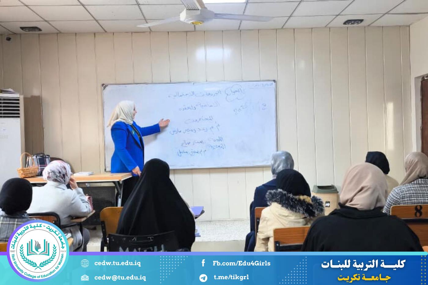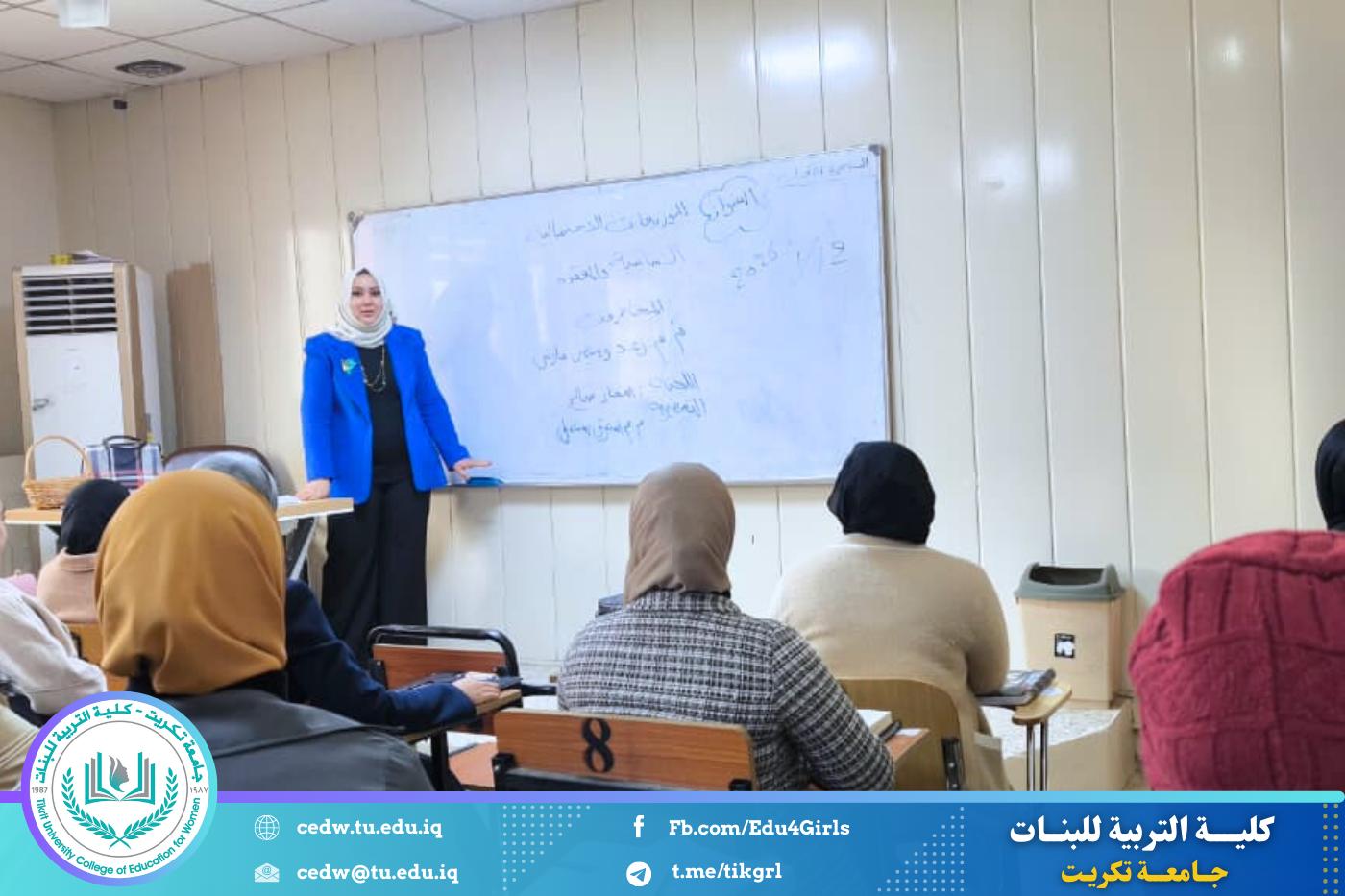 نظّم قسم الرياضيات في كلية التربية للبنات بجامعة تكريت، وبالتعاون مع مركز التعليم المستمر، دورة علمية بعنوان «التوزيعات الاحتمالية الأساسية والمتقدمة»، وذلك على مدى ثلاثة أيام (الاثنين والثلاثاء والأربعاء) الموافق ١٢–١٣–١٤ / ١ / ٢٠٢٦، وعلى رحاب قاعة المرحلة الثانية – قسم الرياضيات.