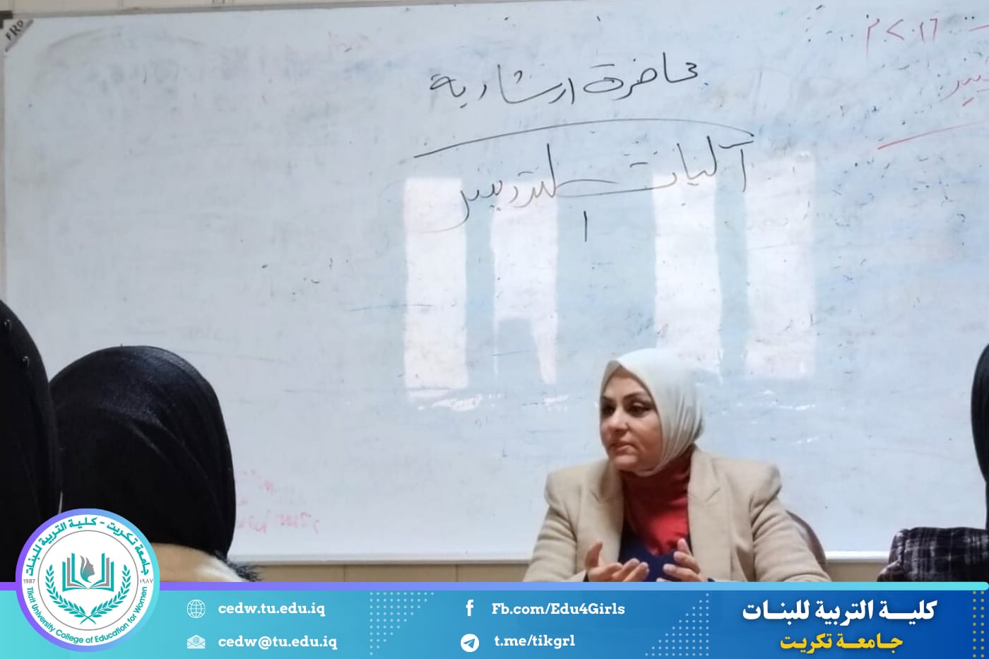 وهدفت الندوة إلى تعريف الطالبات بآليات التدريس الحديثة، وبيان أهميتها في تطوير العملية التعليمية، فضلًا عن التأكيد على ضرورة اعتماد آليات التدريس بوصفها جزءًا لا يتجزأ من العملية التعليمية، بما يسهم في رفع مستوى الفهم والاستيعاب لدى الطلبة وتحقيق الأهداف التربوية المنشودة.