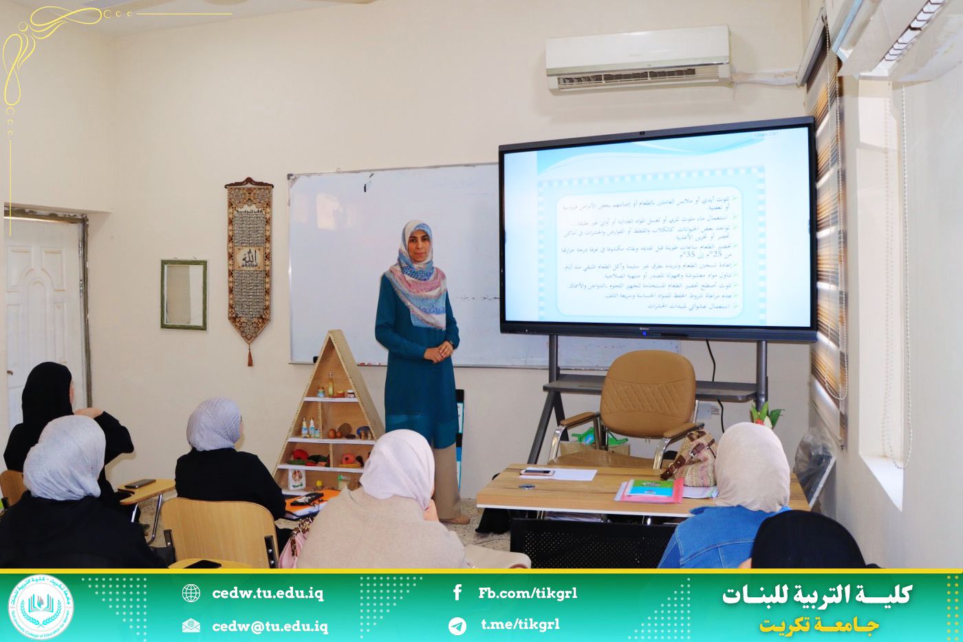 اقامت كلية التربية للبنات/ قسم الاقتصاد المنزلي بالتعاون مع مركز التعليم المستمر دورة بعنوان : التسمم الغذائي بواسطة الأحياء المجهرية وتأثيره على الجهاز الهضمي، وذلك ليومي الثلاثاء والاربعاء الموافق ١٥ - ١٦ / ٤ / ٢٠٢٥ ، وعلى رحاب قاعة قسم الاقتصاد المنزلي