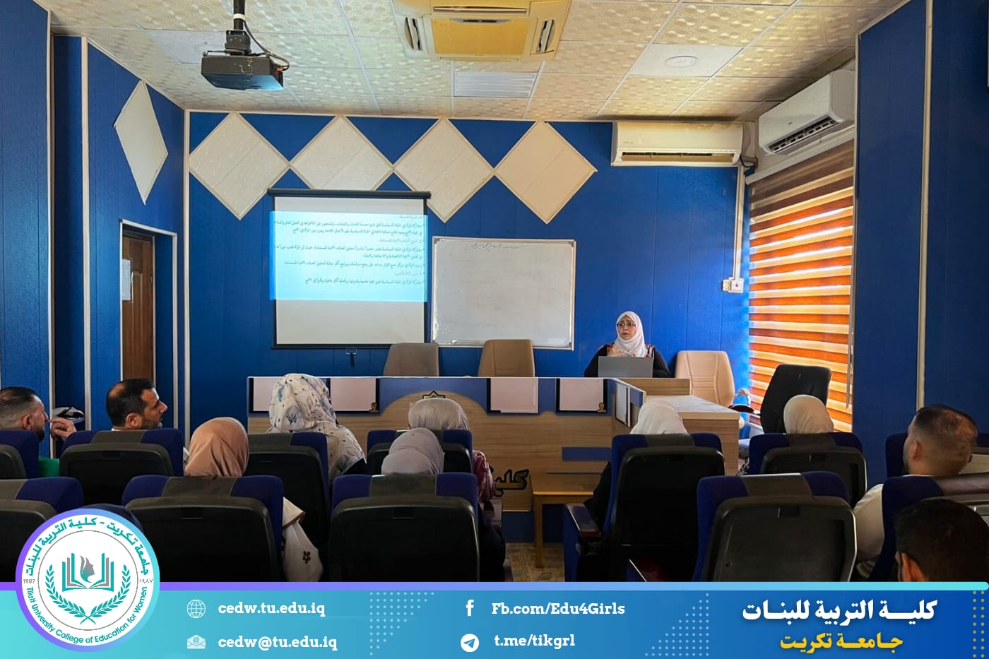 نظّمت وحدة شؤون المرأة في كلية التربية للبنات ، بالتعاون مع مركز التعليم المستمر، ندوة علمية بعنوان: (السياسة مسؤوليتنا والمشاركة حقنا)، في اليوم الأحد الموافق 17 / 8 / 2025، على قاعة السمنار في بناية العمادة.