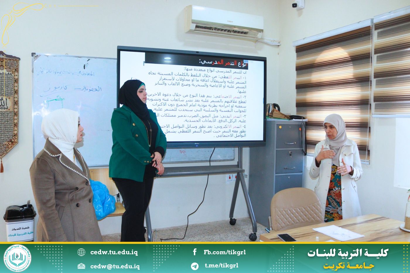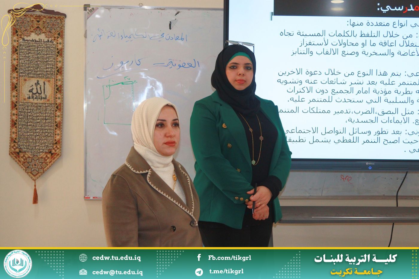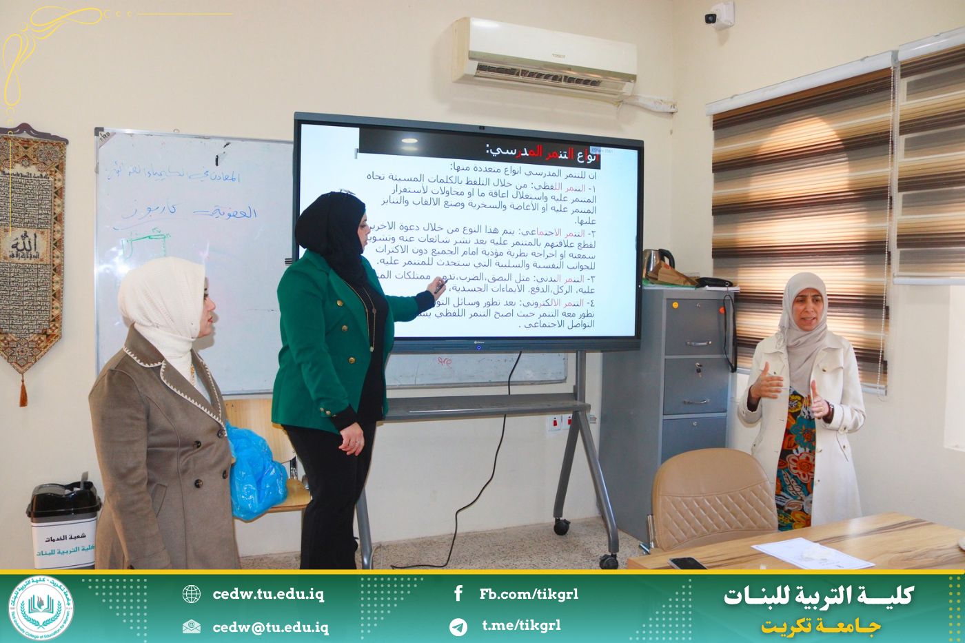 اقامت وحدة الإرشاد النفسي والتوجيه التربوي بالتعاون قسم الاقتصاد المنزلي في كلية التربية للبنات ندوة بعنوان : التنمر في المدارس ، وذلك يوم الثلاثاء الموافق ١٨ / ٢ / ٢٠٢٥ ، وعلى رحاب قاعة قسم الاقتصاد المنزلي
