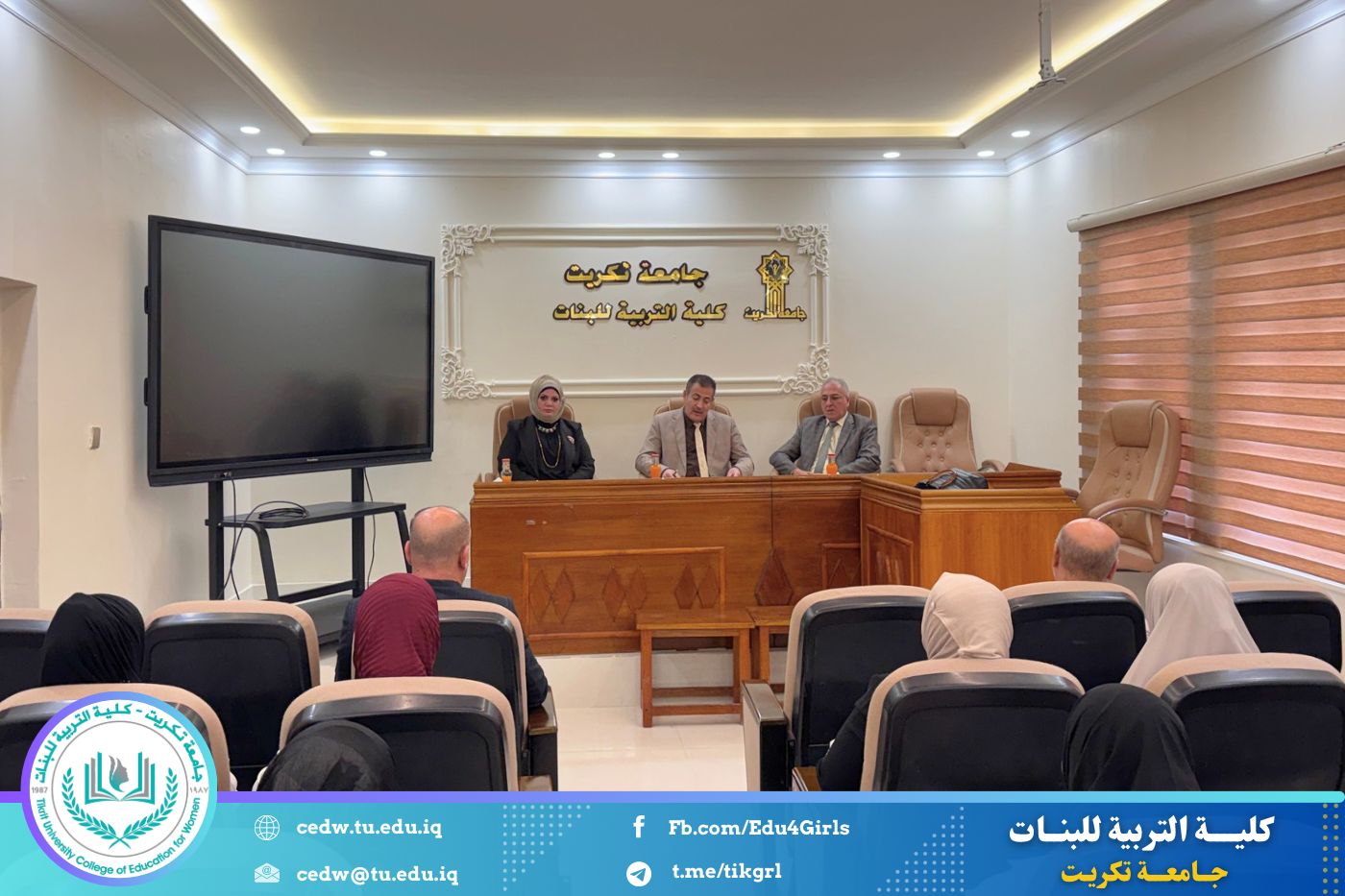 نظّمت وحدة الإرشاد التربوي والتوجيه النفسي بالتعاون مع قسم علوم الحياة في كلية التربية للبنات – جامعة تكريت، يوم الأحد الموافق ١٩ تشرين الأول ٢٠٢٥، ندوة علمية بعنوان: "التصدي للغش في الامتحانات الجامعية: الإطار القانوني والبدائل الإصلاحية"، وذلك على قاعة السمنار – الأقسام العلمية.