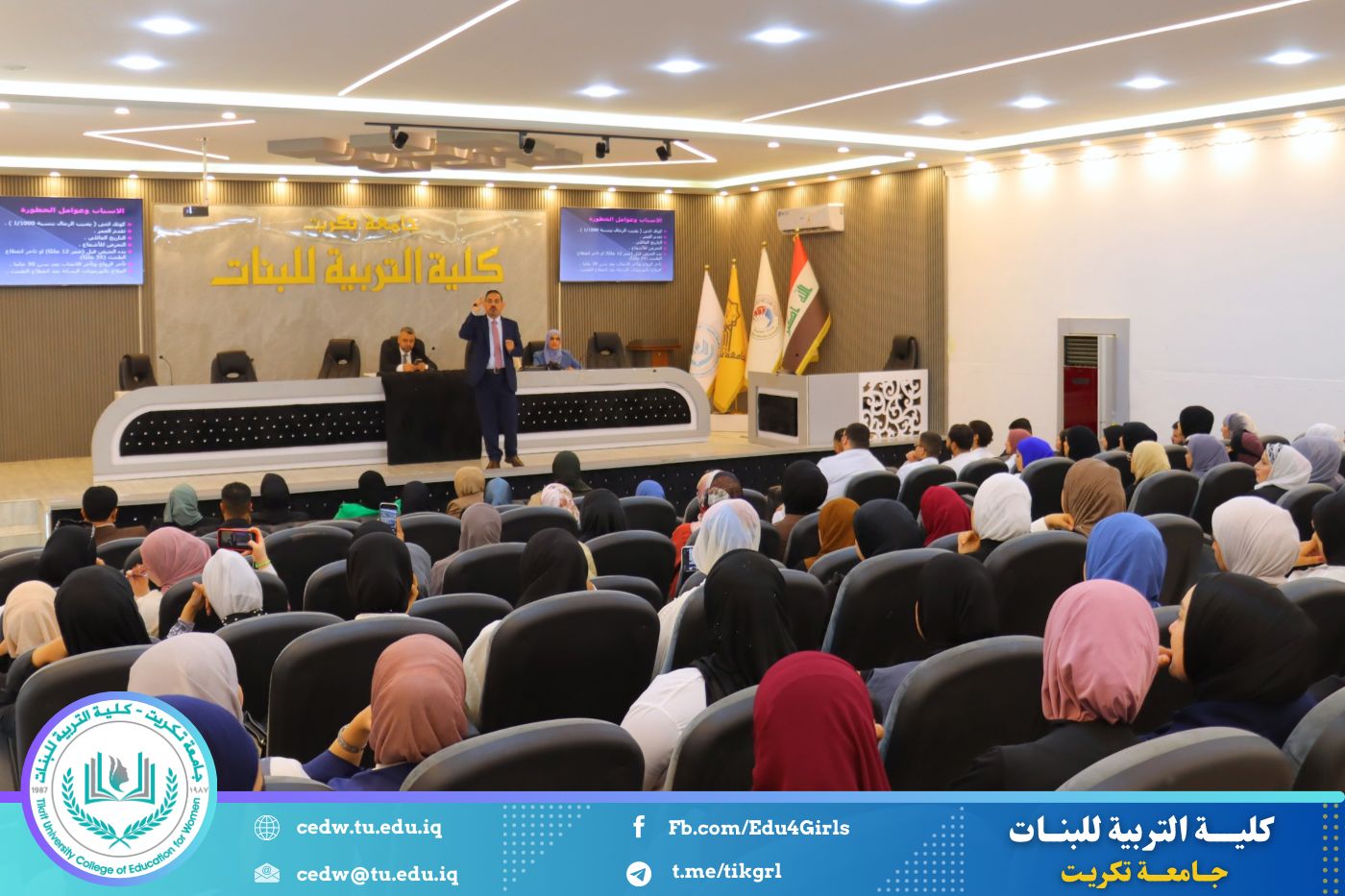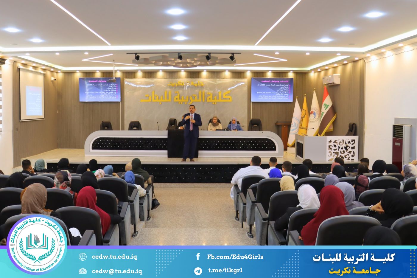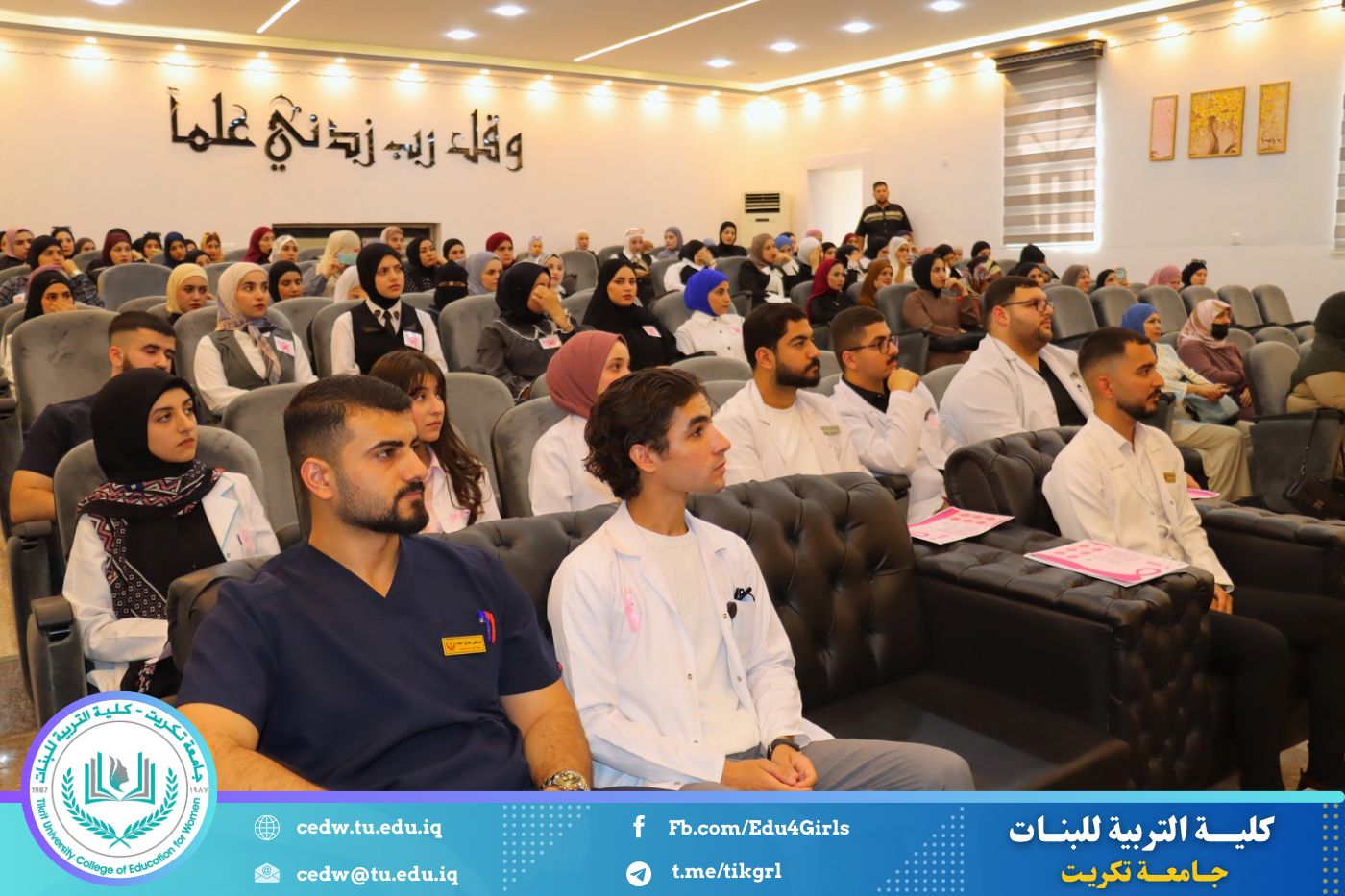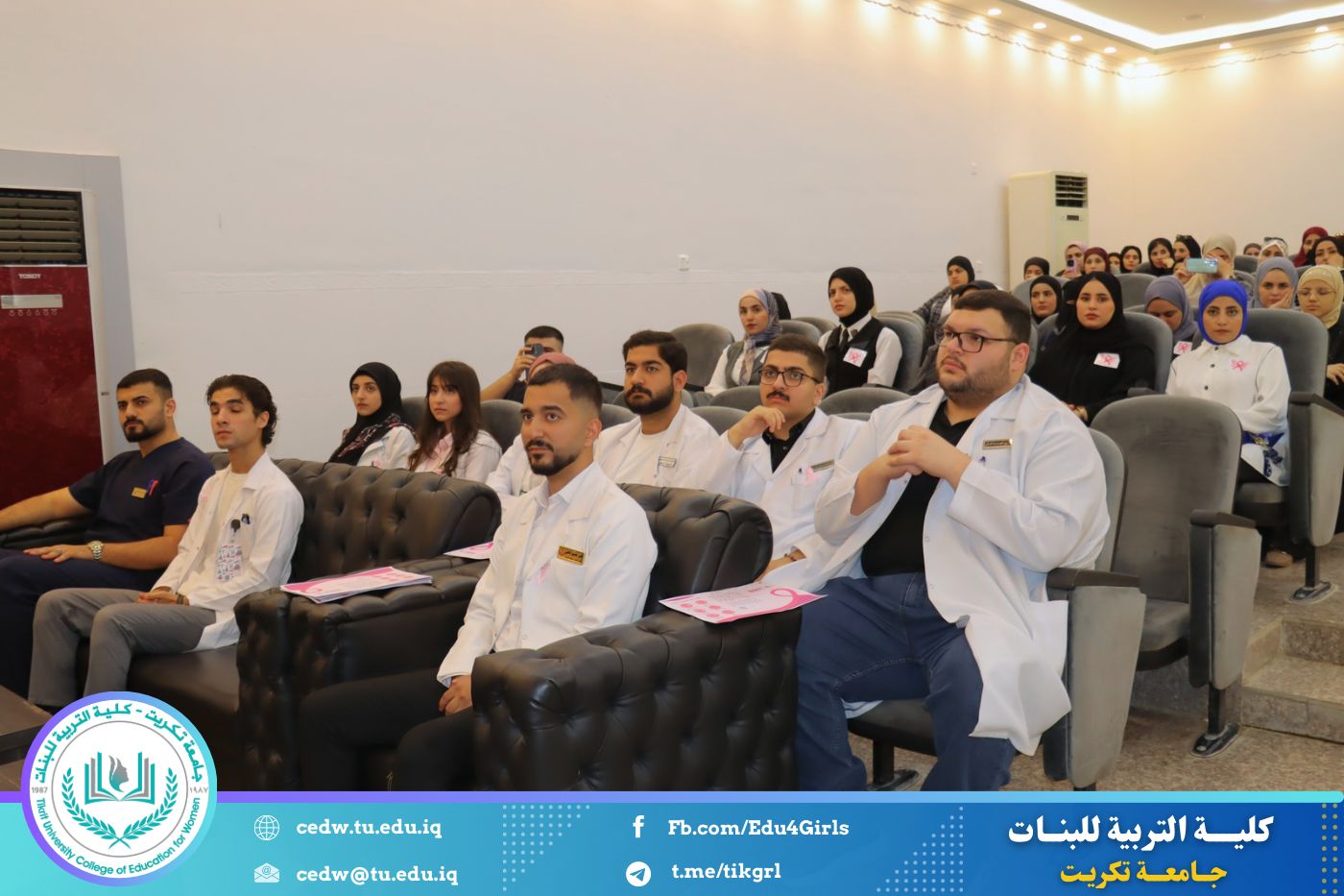 في إطار سعيها المستمر لنشر الوعي الصحي وتعزيز ثقافة الوقاية بين أوساط الطالبات والمنتسبات، نظّمت كلية التربية للبنات في جامعة تكريت، بالتعاون مع شعبة شؤون المرأة ومديرية صحة صلاح الدين وكلية الطب، صباح يوم الأحد الموافق ١٩ تشرين الأول ٢٠٢٥، ندوة توعوية موسّعة حملت عنوان: "الكشف المبكر عن سرطان الثدي"، وذلك على قاعة المرحوم الأستاذ الدكتور جايد زيدان في عمادة الكلية.