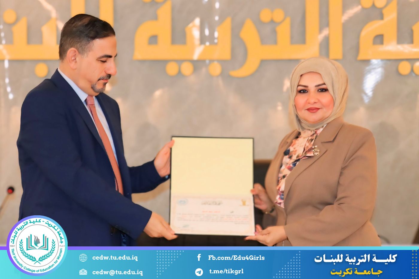 وفي ختام الندوة، قدّم المنظمون شكرهم وتقديرهم إلى عمادة الكلية على دعمها المتواصل للأنشطة التوعوية التي تسهم في ترسيخ ثقافة صحية رصينة لدى الطالبات وتعزيز الدور التربوي والإنساني للكلية في خدمة المجتمع. كما قامت عمادة كلية التربية للبنات ممثلةً بالسيدة عميد الكلية بتكريم السادة المحاضرين تثمينًا لجهودهم القيّمة ومشاركتهم الفاعلة في إنجاح الندوة.