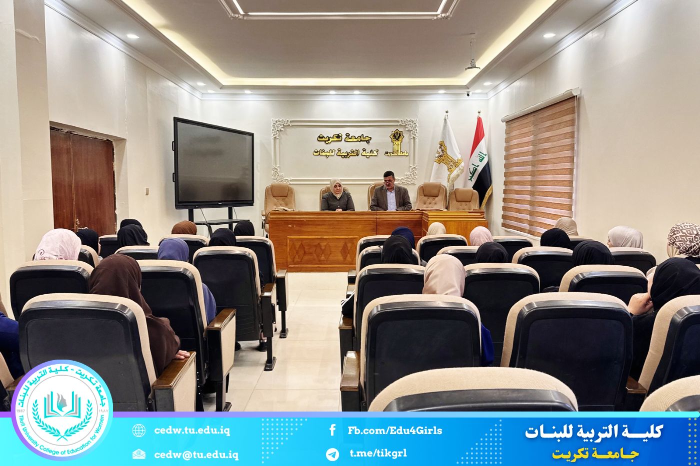 أقامت كلية التربية للبنات – قسم العلوم التربوية والنفسية، وبالتعاون مع مركز التعليم المستمر، دورة تدريبية بعنوان (أساسيات وضوابط التطبيق لطالبات المرحلة الرابعة)، وذلك يومي الأربعاء والخميس الموافق 11–12 / 2 / 2026، على قاعة السمنار في بناية العمادة