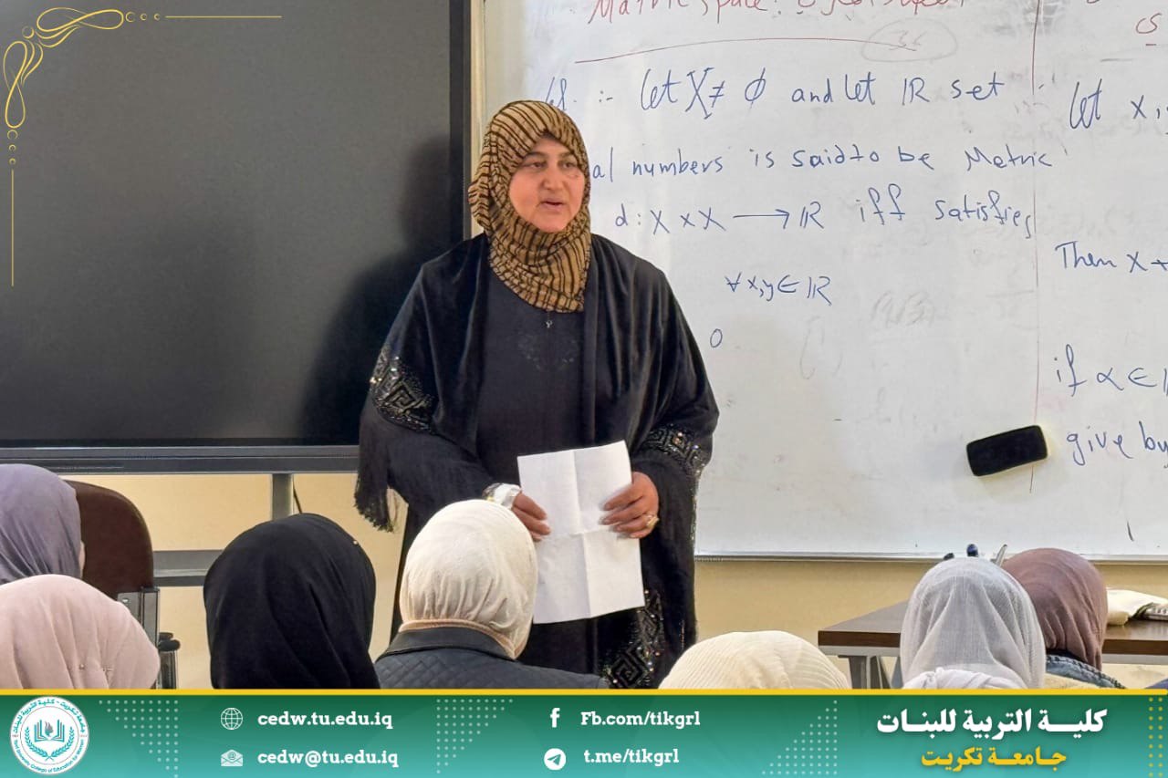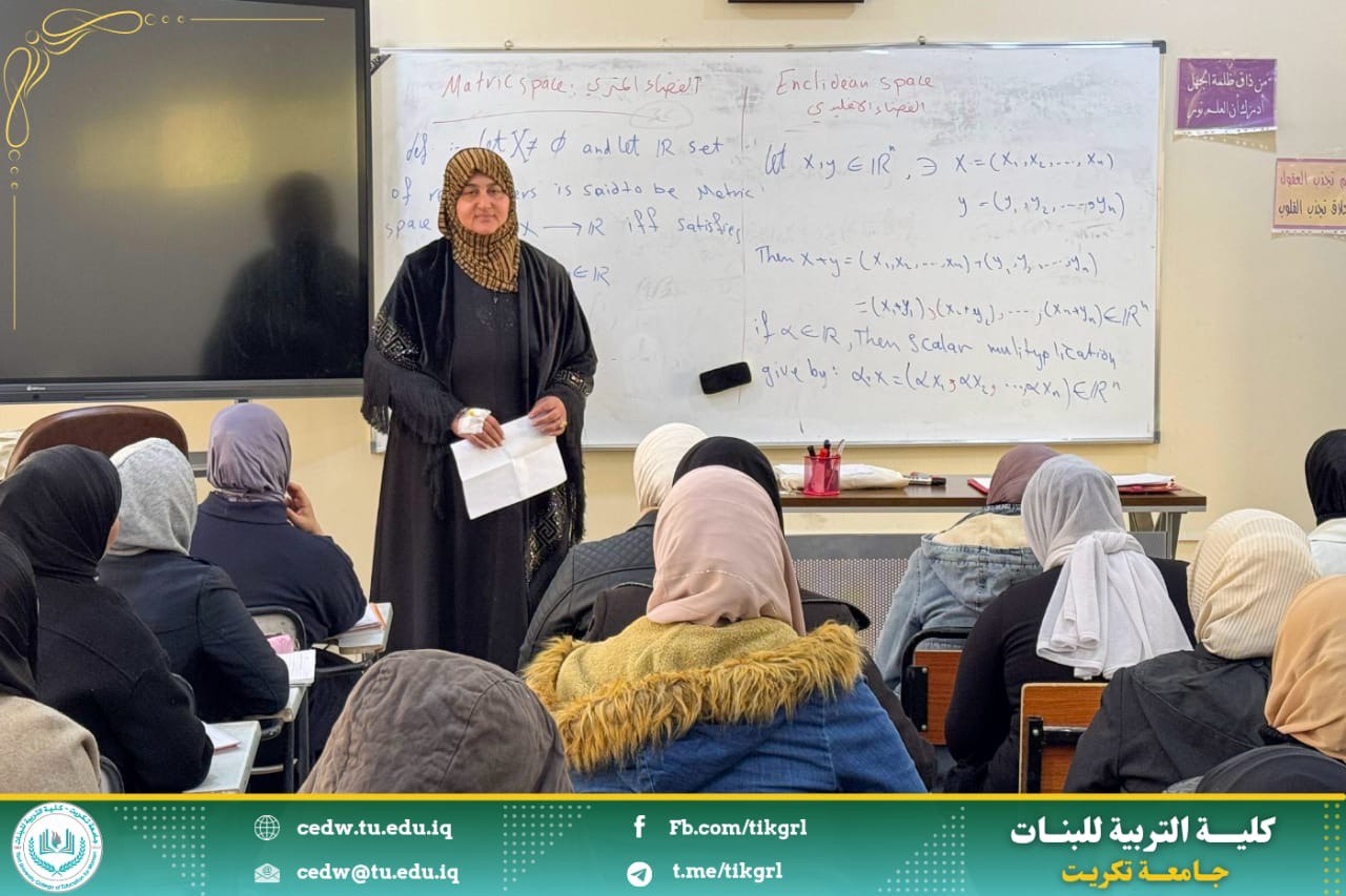 في اليوم الثلاثاء الموافق 17/ 12/ 2024 على قاعة قسم الرياضيات / المرحلة الثالثة