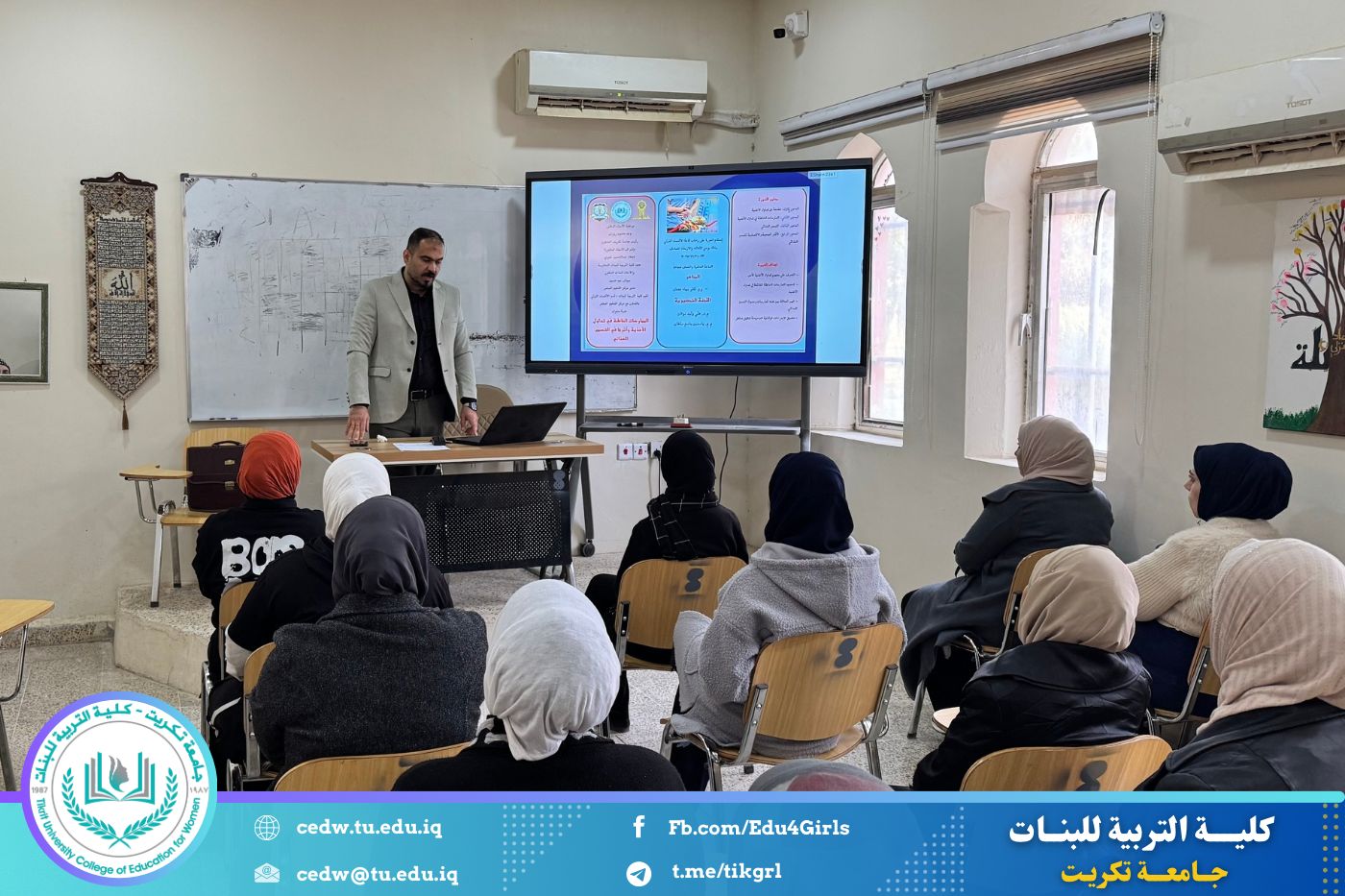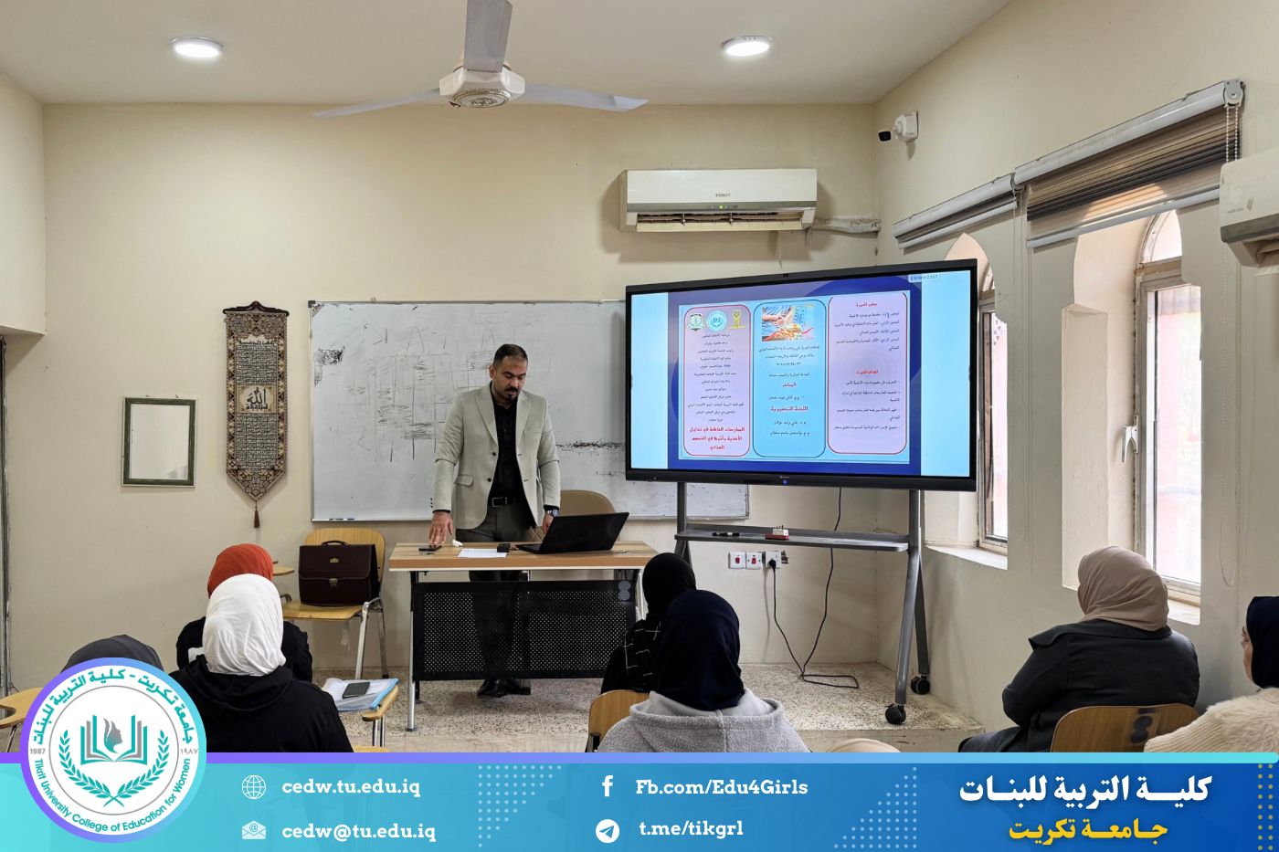 نظّم قسم الاقتصاد المنزلي في كلية التربية للبنات بجامعة تكريت، وبالتعاون مع مركز التعليم المستمر، دورة علمية بعنوان «الممارسات الخاطئة في تداول الأغذية وأثرها في التسمم الغذائي»، وذلك على مدى يومي الثلاثاء والأربعاء الموافقين ٢٣–٢٤ / ١٢ / ٢٠٢٥، وعلى رحاب قاعة قسم الاقتصاد المنزلي.