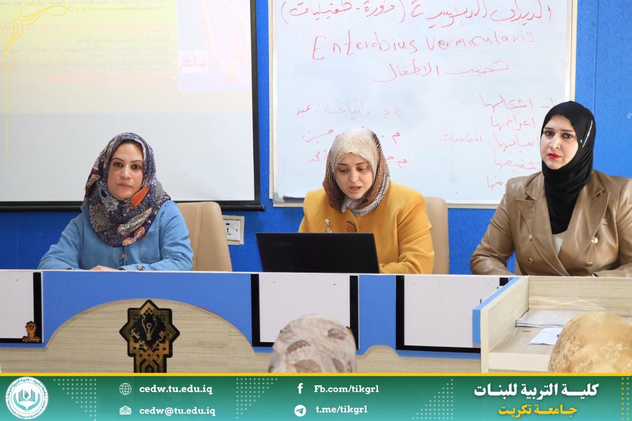 اقام مركز التعليم المستمر بالتعاون مع كلية التربية للبنات قسم علوم الحياة دورة تدريبية بعنوان: (الديدان الدبوسية وانتشارها في الأطفال وكيفية الوقاية منها ) في يومي الاحد والاثنين الموافق 29-30/ 12/ 2024 على قاعة السمنار في بناية العمادة