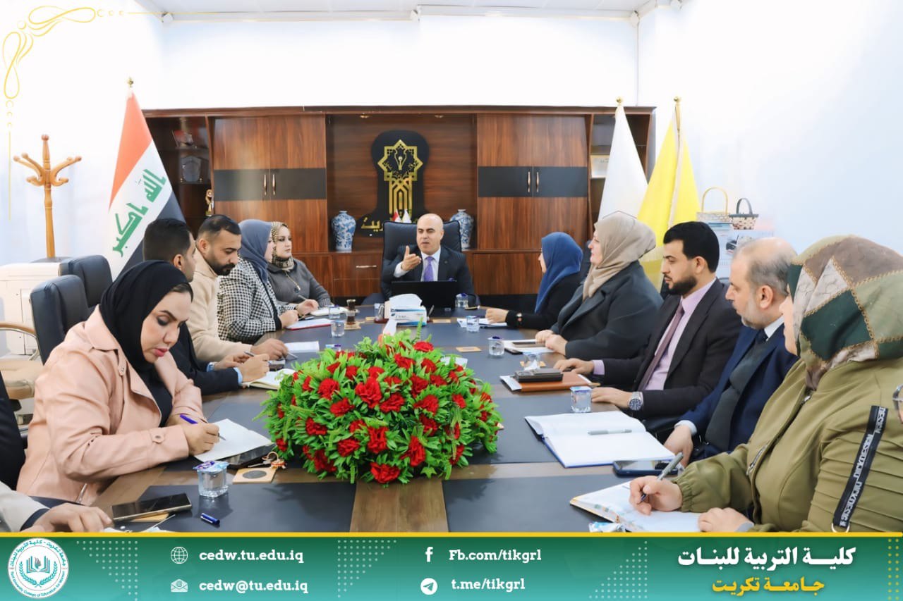 برعاية السيد رئيس جامعة تكريت الاستاذ الدكتور وعد محمود رؤوف وتحت اشراف السيدة عميد كلية التربية للبنات الاستاذ الدكتورة نجلاء عبدالحسين عليوي اقامت كلية التربية للبنات ورشة عمل بعنوان: (معايير المجلس الوطني لاعتماد برامج كليات المجموعة التربوية ) في اليوم الاربعاء الموافق 29/ 1/ 2025 على قاعة أمانة المجلس في عمادة الكلية