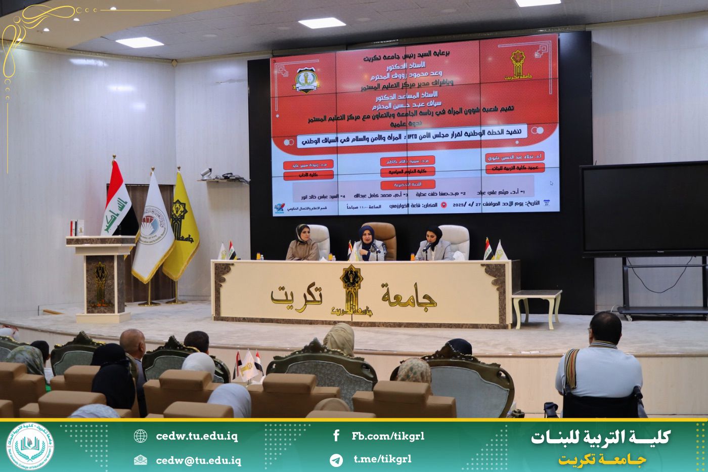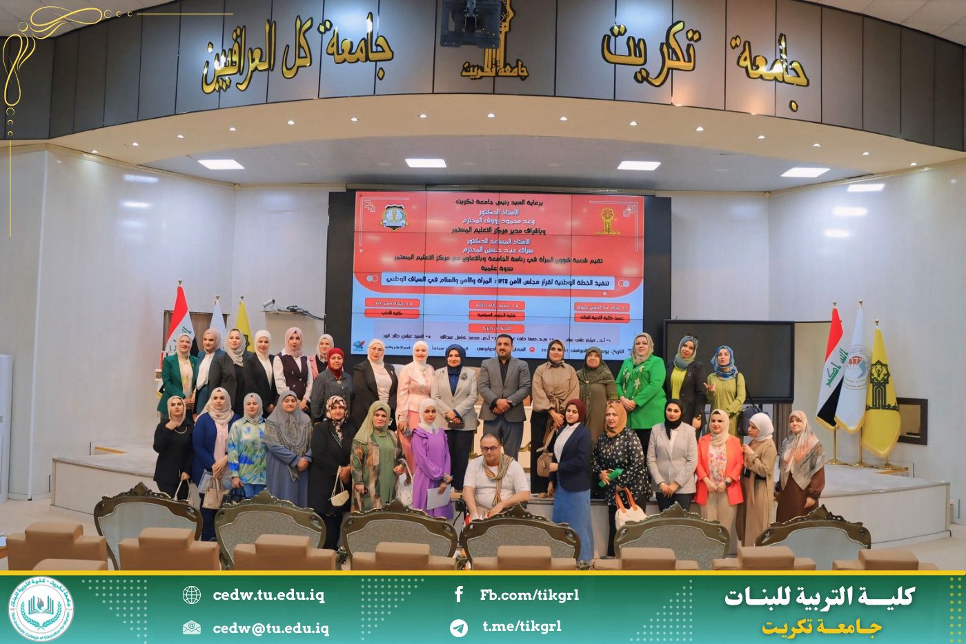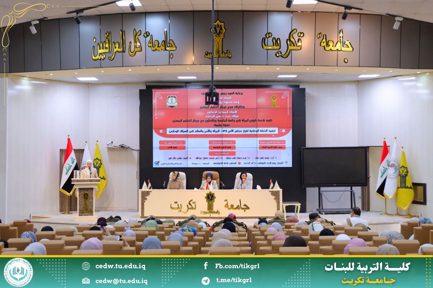 واشارت السيدة عميد كلية التربية للبنات إلى أن تطبيق القرار الأممي ١٣٢٥ في السياق العراقي يتطلب مزيدًا من الجهود التنسيقية بين المؤسسات الحكومية والأكاديمية ومنظمات المجتمع المدني.