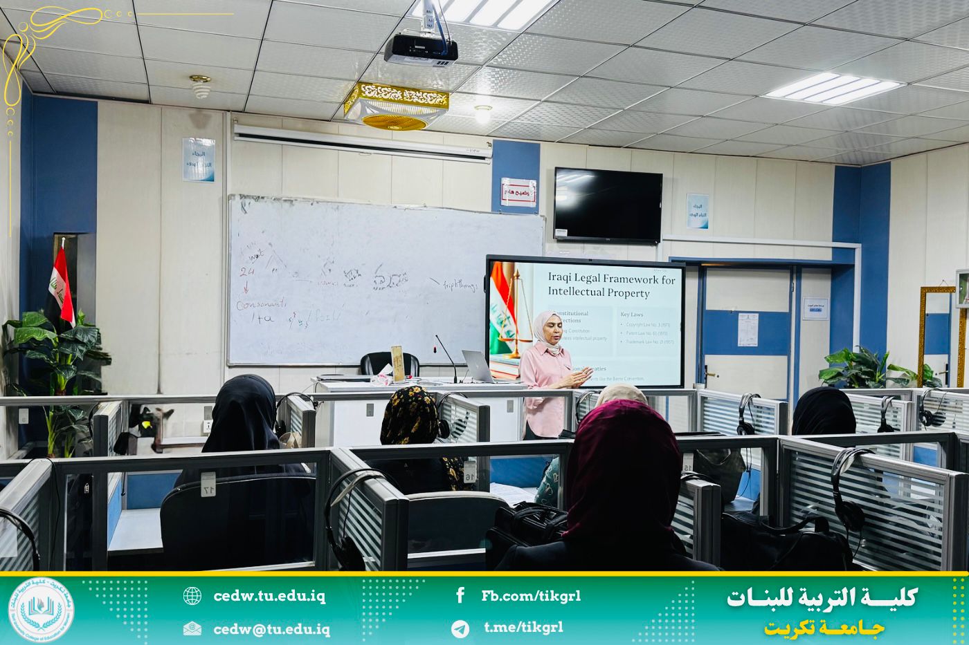 أقامت كلية التربية للبنات شعبة الدراسات العليا بالتعاون مع قسم اللغة الإنكليزية ندوة علمية بعنوان:(أخلاقيات الملكية الفكرية) في اليوم الاثنين الموافق 2025/4/28 على قاعة مختبر الصوت