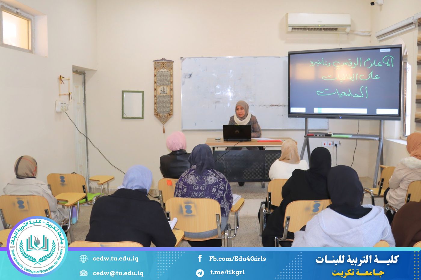 نظّم قسم الاقتصاد المنزلي في كلية التربية للبنات بجامعة تكريت، وبالتعاون مع مركز التعليم المستمر، دورة علمية بعنوان «الإعلام الرقمي وتأثيره على الطالبات الجامعيات»، وذلك على مدى يومي الاثنين والثلاثاء الموافقين ٢٩–٣٠ / ١٢ / ٢٠٢٥، على رحاب قاعة قسم الاقتصاد المنزلي.