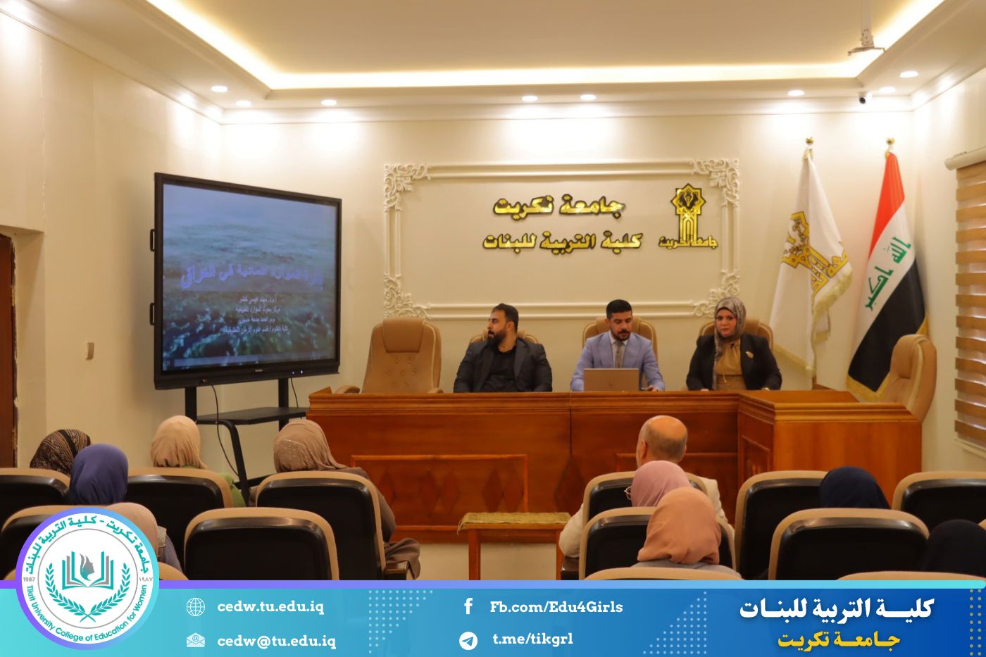 نظّمت وحدة شؤون المرأة في كلية التربية للبنات – جامعة تكريت، وبالتعاون مع الهيئة العامة للأنواء الجوية والرصد الزلزالي - محطة أنواء تكريت، ومركز بحوث الموارد الطبيعية، وكلية العلوم و قسم علوم الحياة، ورشة علمية بعنوان: «التغيرات المناخية وتحديات العصر»، وذلك يوم الثلاثاء الموافق ١٧ شباط ٢٠٢٦، على رحاب قاعة السمنار في بناية الأقسام العلمية.
