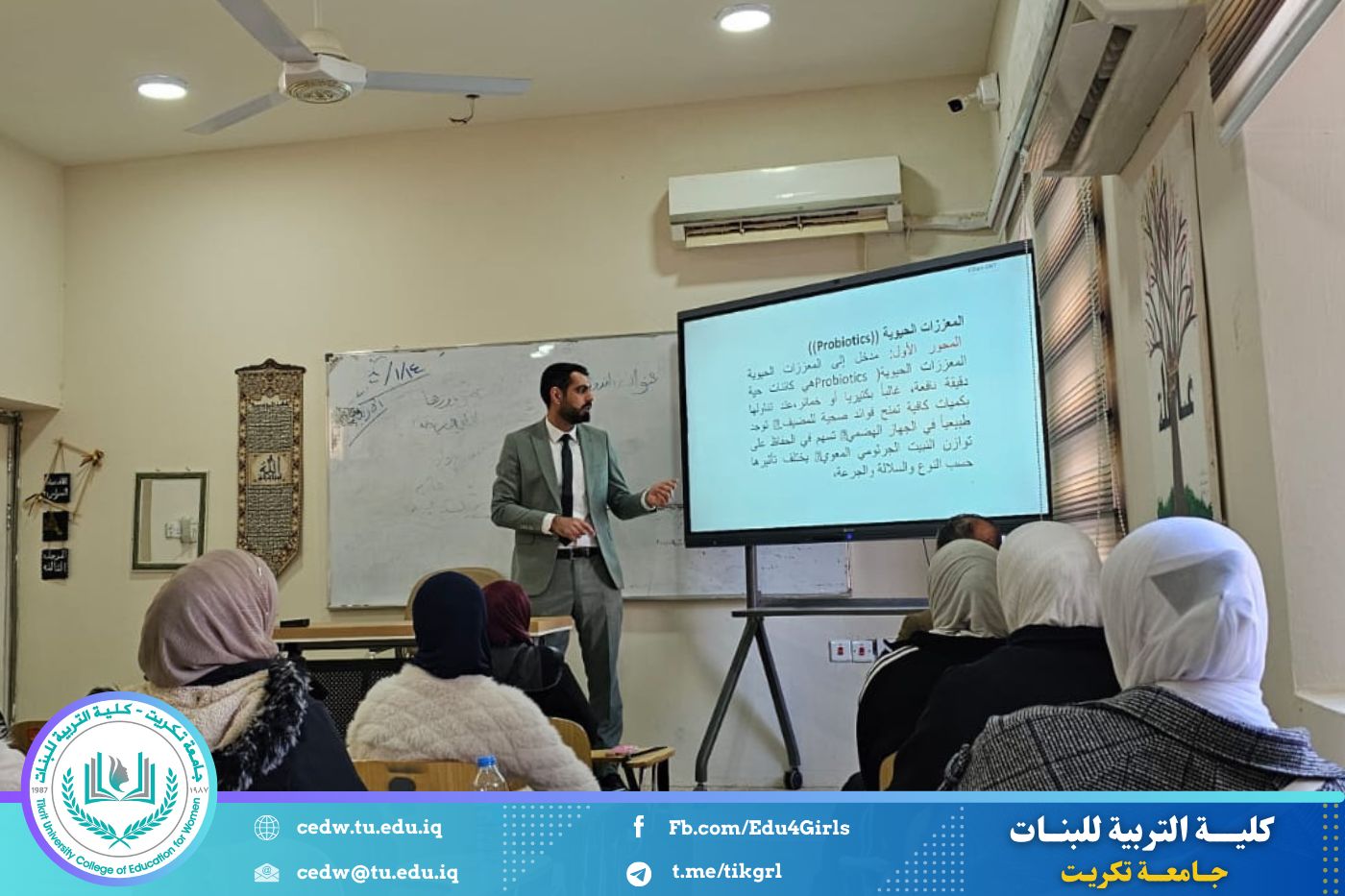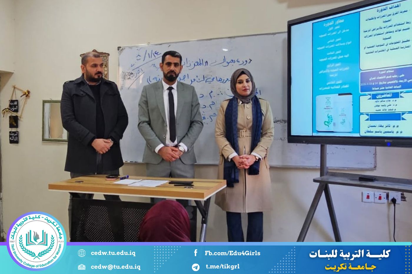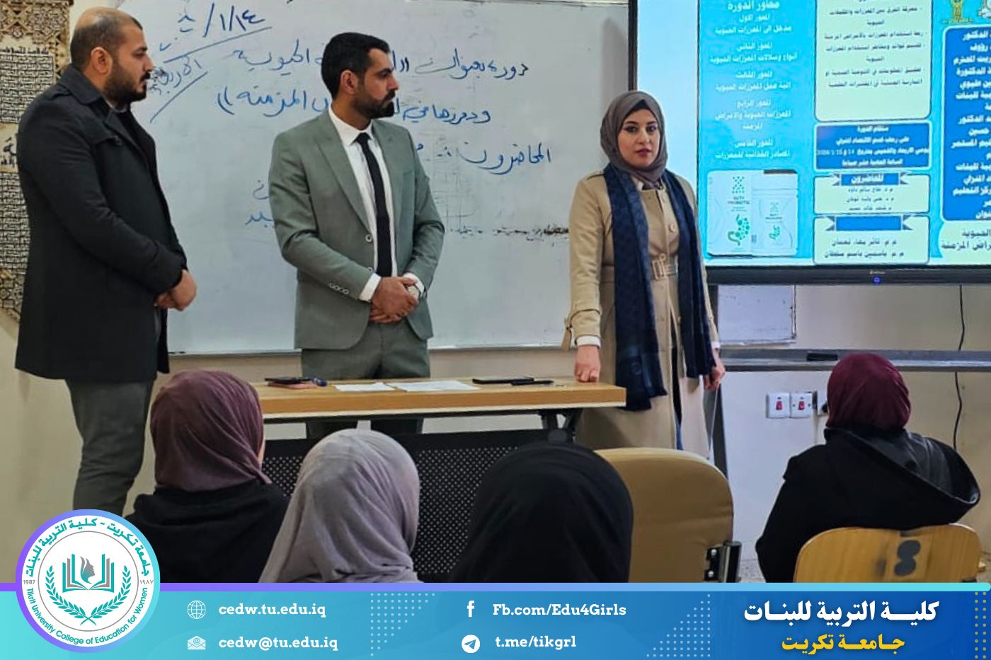 نظّم قسم الاقتصاد المنزلي في كلية التربية للبنات بجامعة تكريت، وبالتعاون مع مركز التعليم المستمر، دورة علمية بعنوان «المعززات الحيوية ودورها في الأمراض المزمنة»، وذلك على مدى يومي الأربعاء والخميس الموافقين ١٤ – ١٥ / ١ / ٢٠٢٦، وعلى رحاب قاعة قسم الاقتصاد المنزلي.