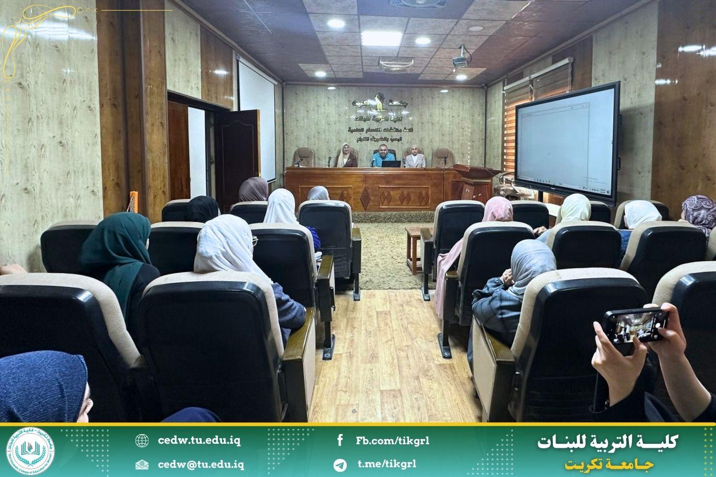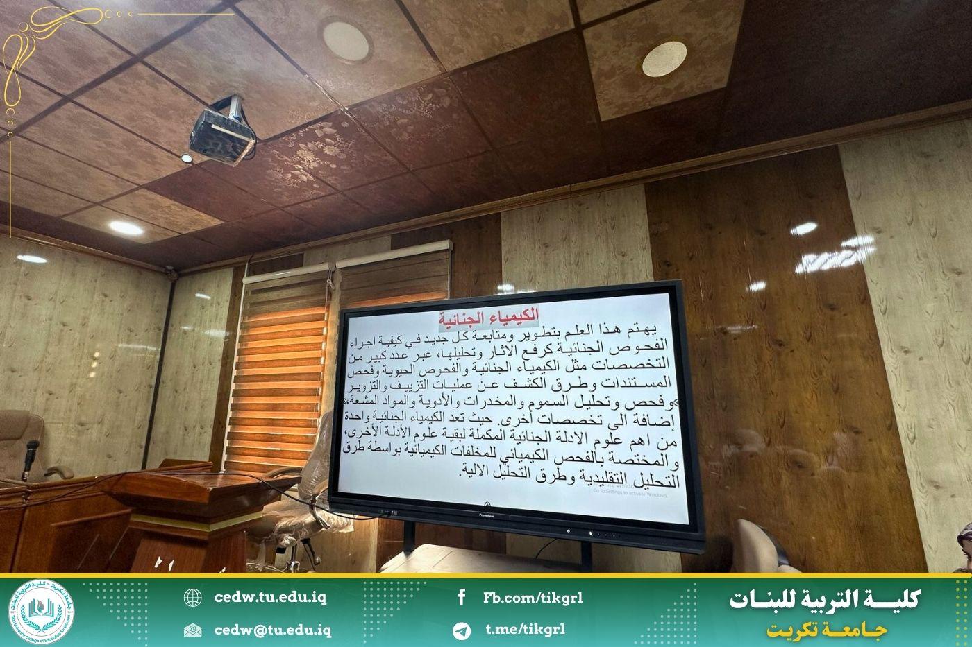 أقام مركز التعليم المستمر بالتعاون مع كلية التربية للبنات قسم الكيمياء دورة تدريبية بعنوان: ( تطبيقات الكيمياء الجنائية ) في يومي الثلاثاء والأربعاء الموافق 25-26/ 3/ 2025 على قاعة السمنار في بناية الأقسام العلمية