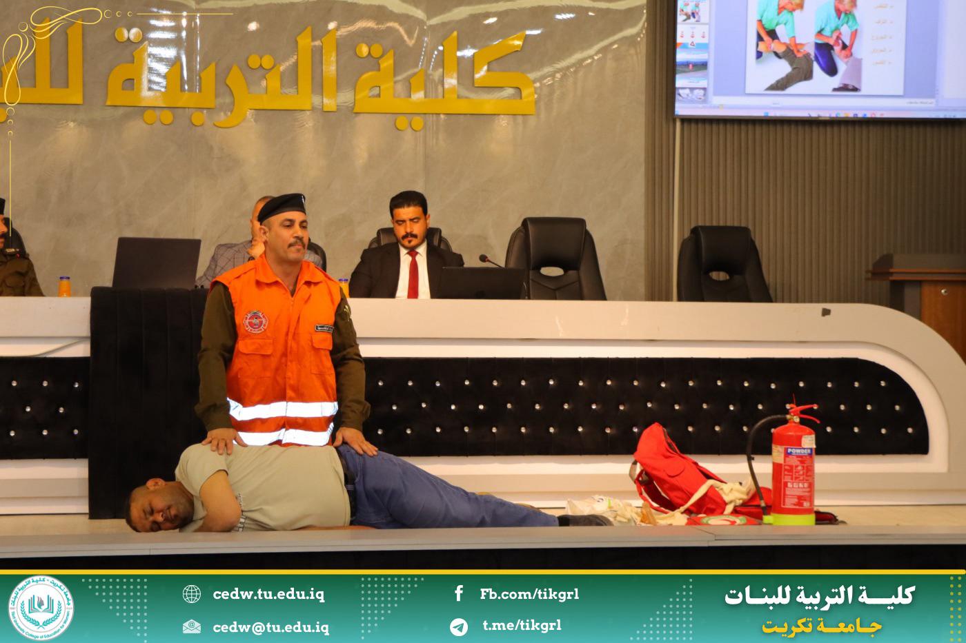 أقامت شعبة السلامة والأمن الكيميائي والبايولوجي والإشعاعي في رئاسة جامعة تكريت بالتعاون مع مركز التعليم المستمر و مديرية الدفاع المدني في محافظة صلاح الدين، وتنفيذاً لتعليمات وزارة التعليم العالي والبحث العلمي وتوجيهات رئاسة الجامعة