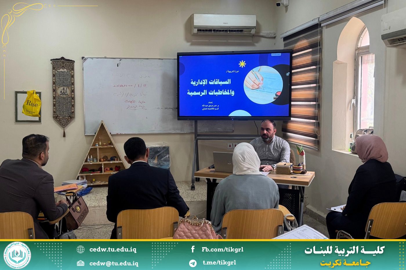 اقامت كلية التربية للبنات/ قسم الاقتصاد المنزلي بالتعاون مع قسم الشؤون العلمية ومركز التعليم المستمر دورة بعنوان : السياقات الإدارية والمخاطبات الرسمية، وذلك ليومي الاثنين والثلاثاء الموافق ١٤ - ١٥ / ٤ / ٢٠٢٥ ، وعلى رحاب قاعة قسم الاقتصاد المنزلي