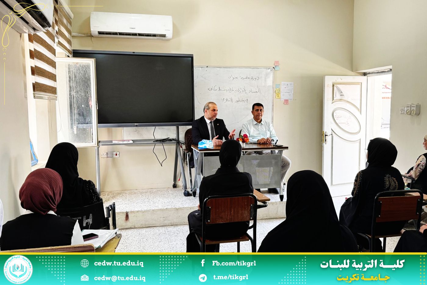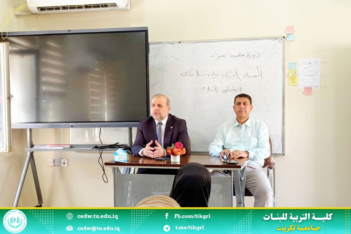 اقام مركز التعليم المستمر بالتعاون مع كلية التربية للبنات/ قسم علوم القرآن والتربية الإسلامية دورة بعنوان : الفساد الإداري والمالي وسبل مكافحته في المنظور الإسلامي، ذلك ليومي الاحد والاثنين الموافق ٢٠ - ٢١ / ٤ / ٢٠٢٥ ، وعلى رحاب قاعات الدراسات الأولية في قسم علوم القرآن والتربية الإسلامية