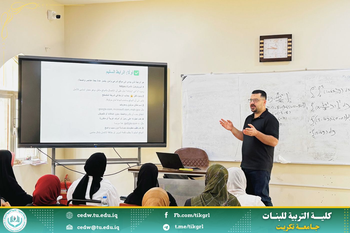 أقام مركز التعليم المستمر بالتعاون مع كلية التربية للبنات دورة تدريبية بعنوان: "روابط الإنترنت والشبكة الآمنة: كيفية تمييز الروابط السليمة من الملغمة"، وذلك على مدار يومي الأحد والاثنين، ٢٧-٢٨ نيسان ٢٠٢٥، في قاعة المرحلة الأولى - قسم الرياضيات.