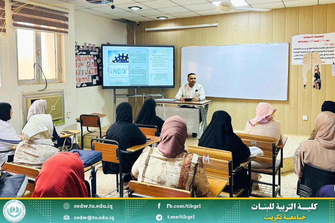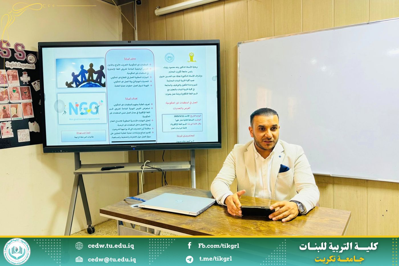 نظّمت وحدة التأهيل والتوظيف والمتابعة، بالتعاون مع قسم اللغة الإنكليزية في كلية التربية للبنات، يوم الأحد الموافق ١١ أيار ٢٠٢٥، ورشة تدريبية بعنوان: "العمل في المنظمات غير الحكومية: الفرص والتحديات"، وذلك على رحاب قاعة الدراسات العليا في قسم اللغة الإنكليزية.