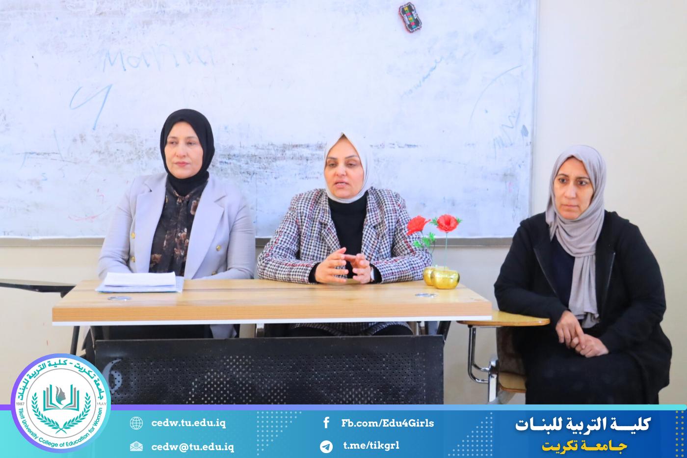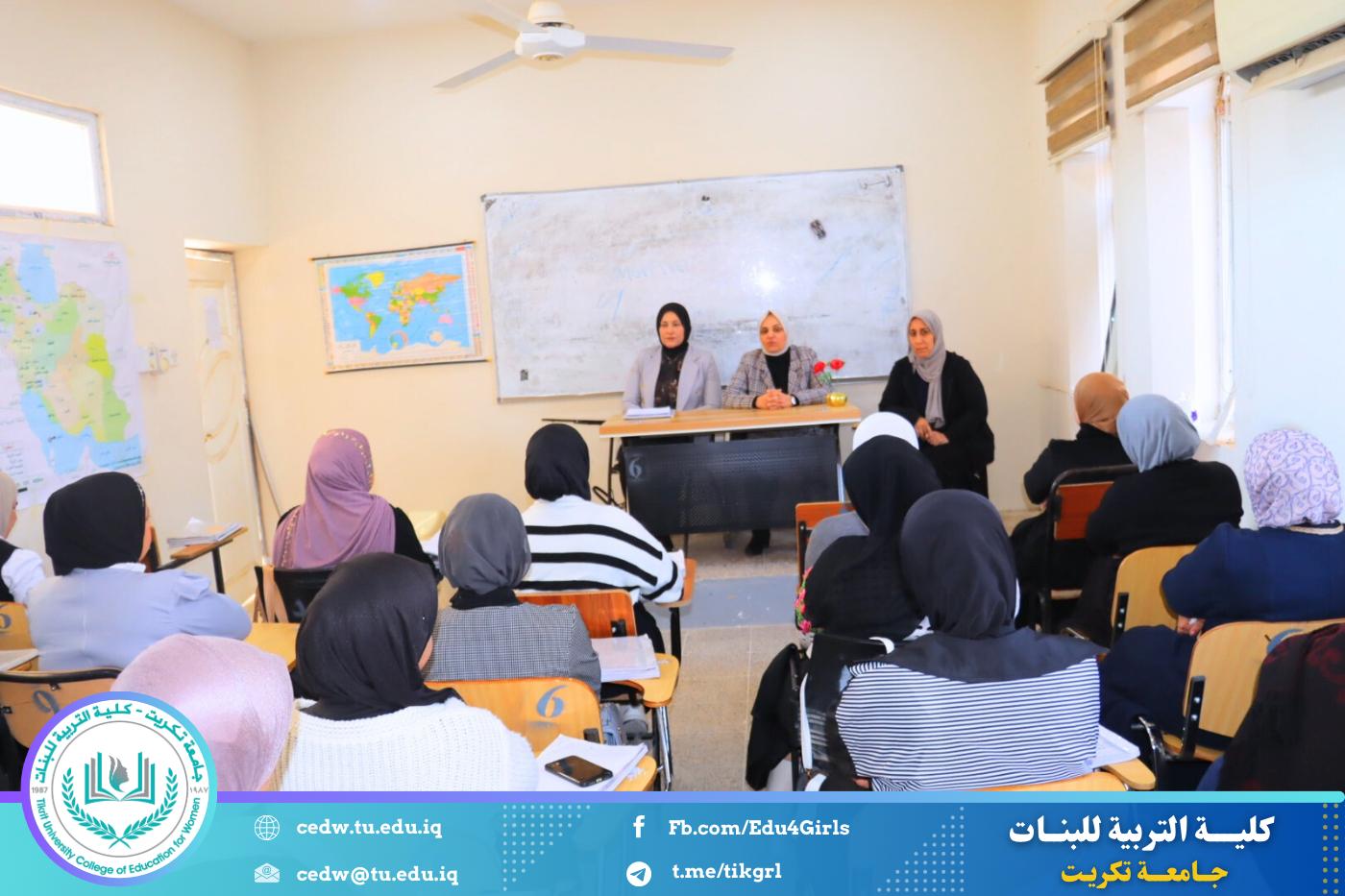 أقامت وحدة الإرشاد التربوي والنفسي، بالتعاون مع قسم التاريخ في كلية التربية للبنات – جامعة تكريت، ندوة إرشادية بعنوان: “رمضان شهر علم وعبادة”، وذلك يوم الاثنين الموافق 2 / 3 / 2026، على قاعة المرحلة الثانية / قسم التاريخ
