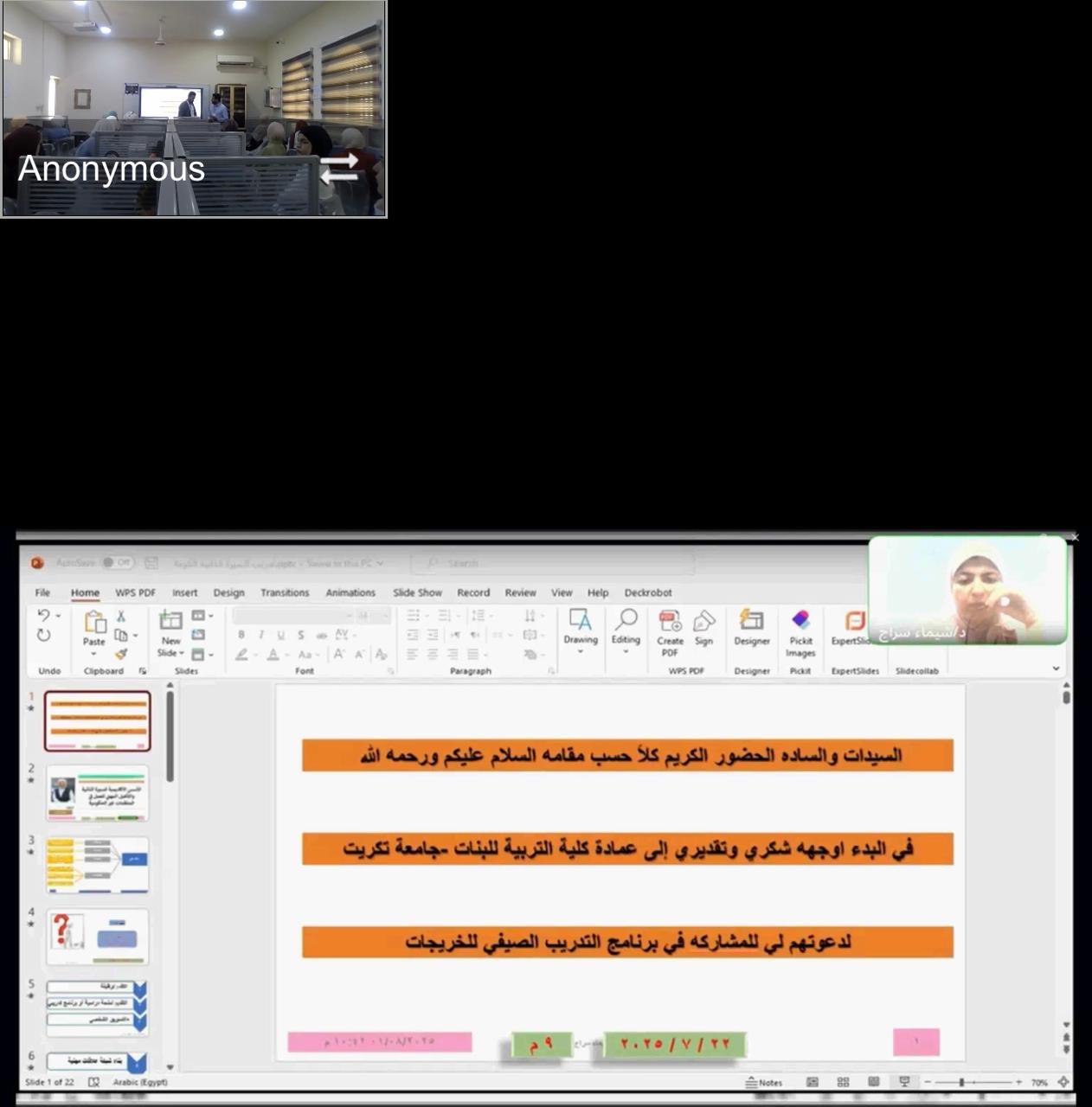 ضمن برنامج التدريب الصيفي للخريجات المقام تحت شعار “مهارات بلا حدود”، نظّمت وحدتا شؤون المرأة والتأهيل والتوظيف والمتابعة في كلية التربية للبنات – جامعة تكريت، وبالتعاون مع مركز التعليم المستمر، ودائرة العمل والتدريب المهني في محافظة صلاح الدين، وغرفة تجارة صلاح الدين، دورة تدريبية متخصصة بعنوان: