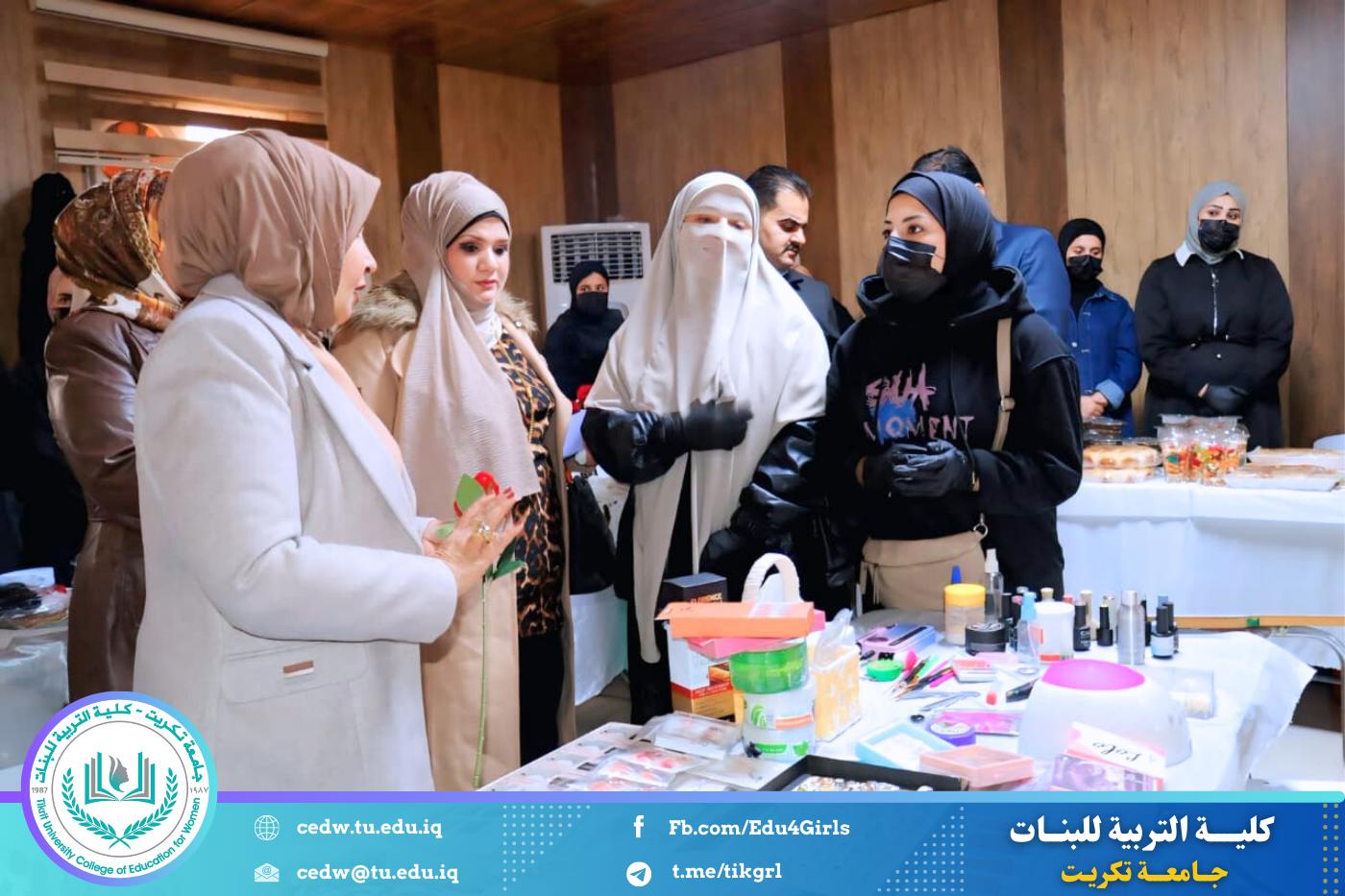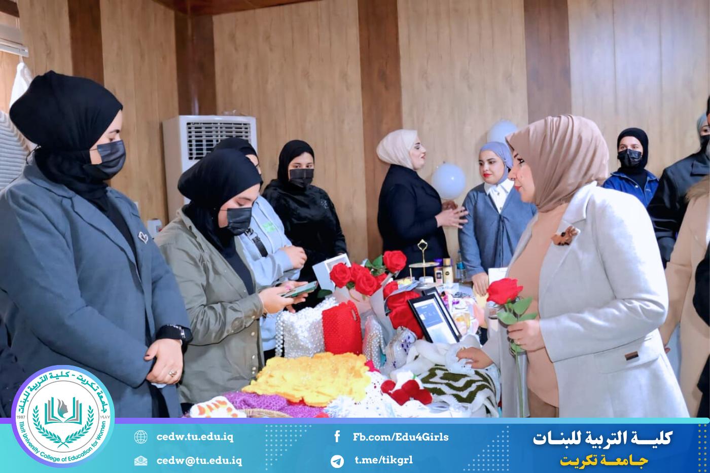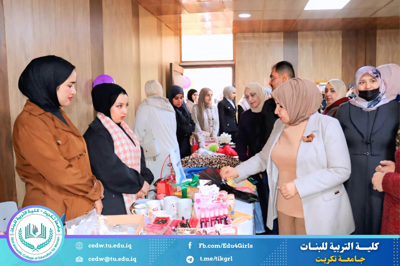 ضمن فعاليات أسبوع الريادة، أقامت وحدة الإرشاد التربوي والتوجيه النفسي في كلية التربية للبنات، وبالتعاون مع الأقسام العلمية في الكلية (قسم علوم الحياة، وقسم العلوم التربوية والنفسية، وقسم الكيمياء)، بازارًا رياديًا حمل عنوان (الريادة والإبداع)، بهدف إبراز طاقات الطالبات وتشجيع مبادراتهن.