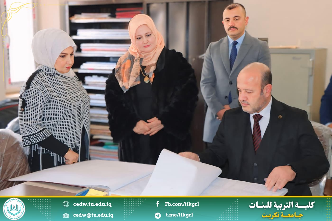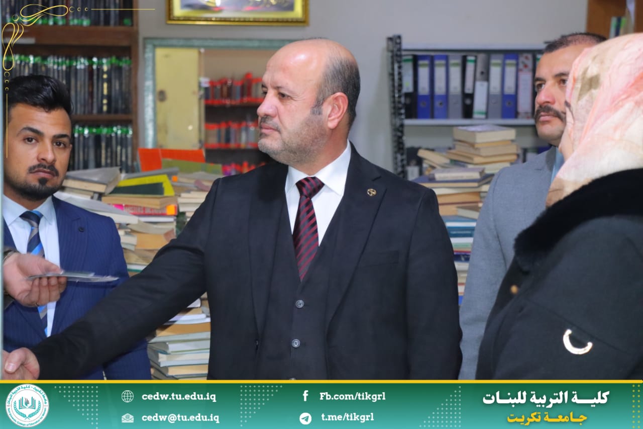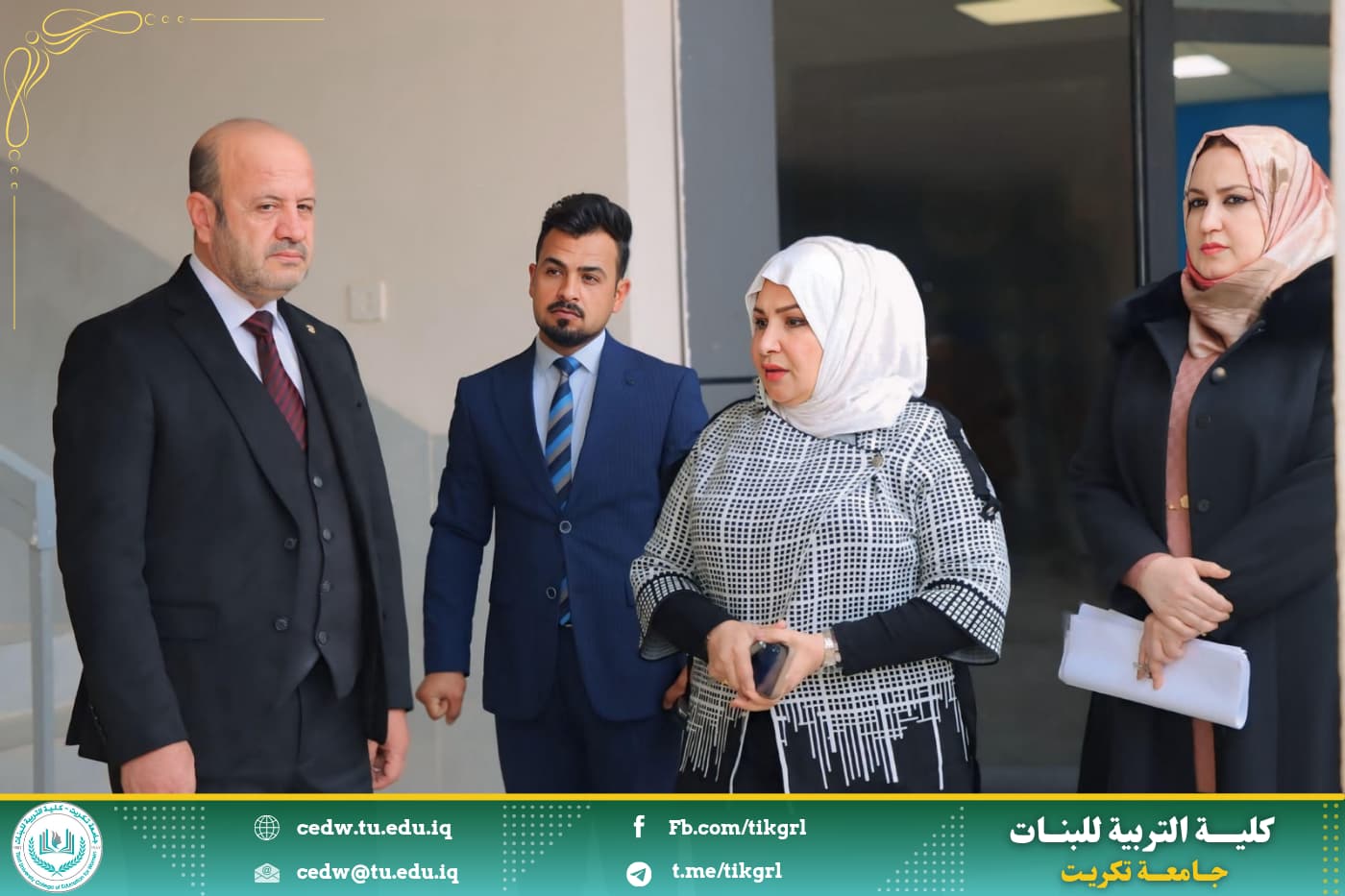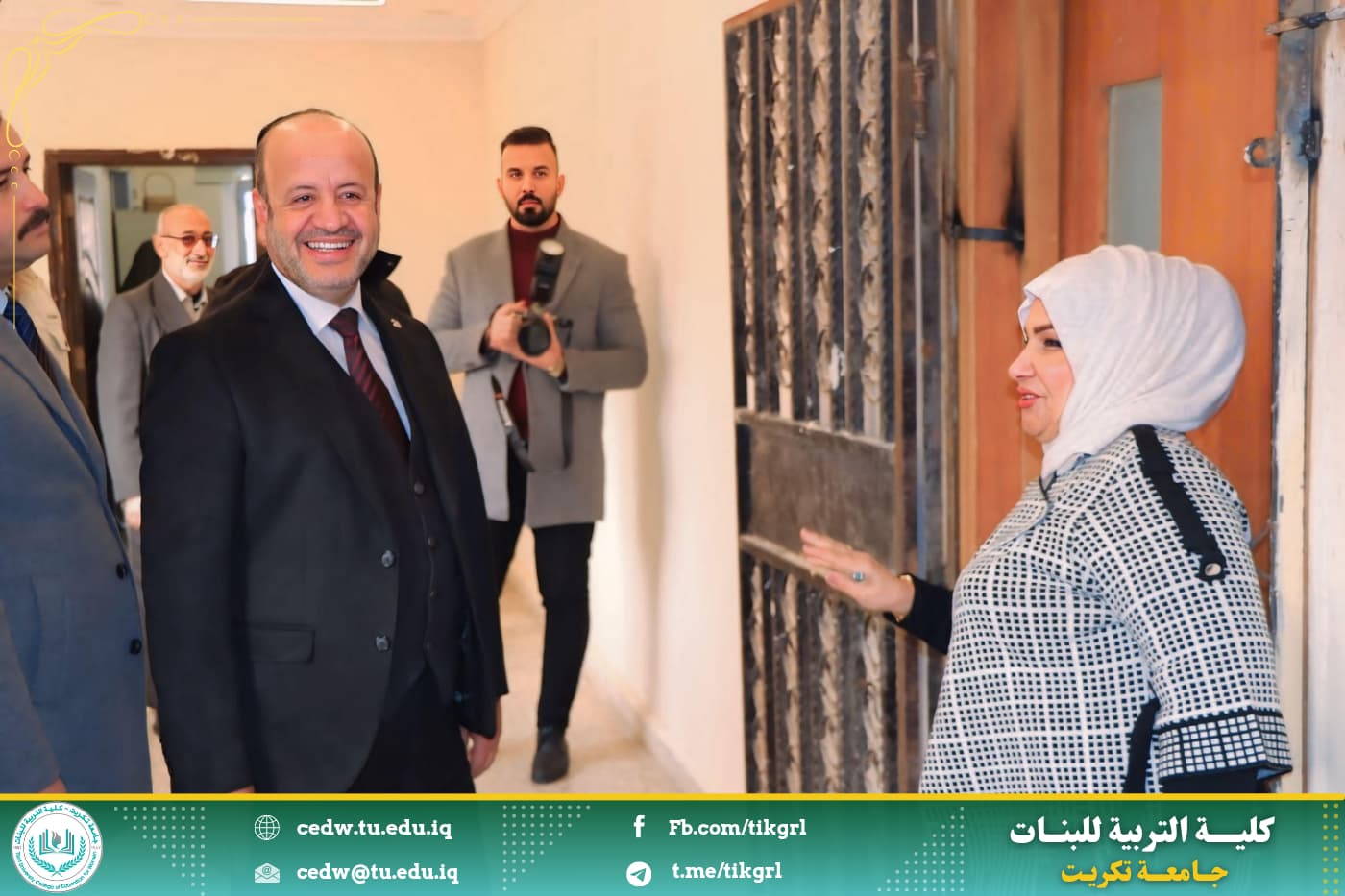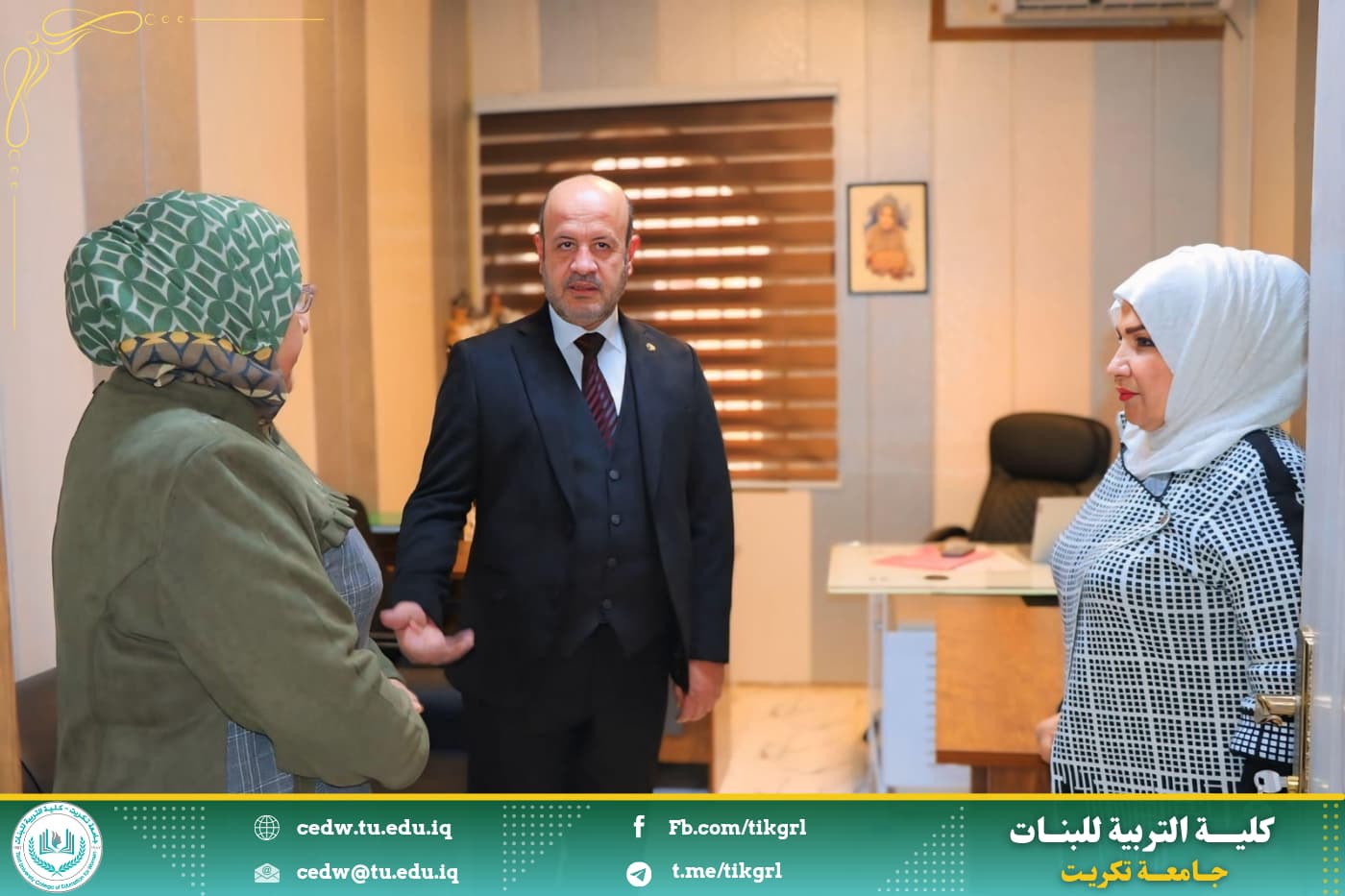 زار كلية التربية للبنات السيد رئيس جامعة تكريت الاستاذ الدكتور وعد محمود رؤوف وكانت في استقبالهم السيدة عميد الكلية الاستاذ الدكتورة نجلاء عبدالحسين عليوي والسيدة معاون العميد للشؤون الإدارية الاستاذ المساعد الدكتورة سلمى خالد ياسين في اليوم الاحد الموافق 12 / 1/ 2025