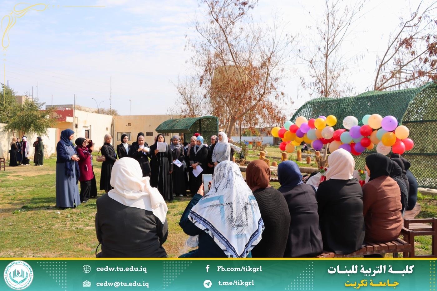 اقام قسم اللغة العربية بالتعاون مع وحدة التوجيه النفسي والإرشاد التربوي في كلية التربية للبنات اصبوحة ناعمة بمناسبة اليوم العالمي للمرأة حملت عنوان : في يومها العالمي ؛ ( قصة المرأة العاملة والبيوت العامرة )، وذلك يوم الاثنين الموافق ١٠ / ٣ / ٢٠٢٥ وعلى رحاب حدائق كلية التربية للبنات