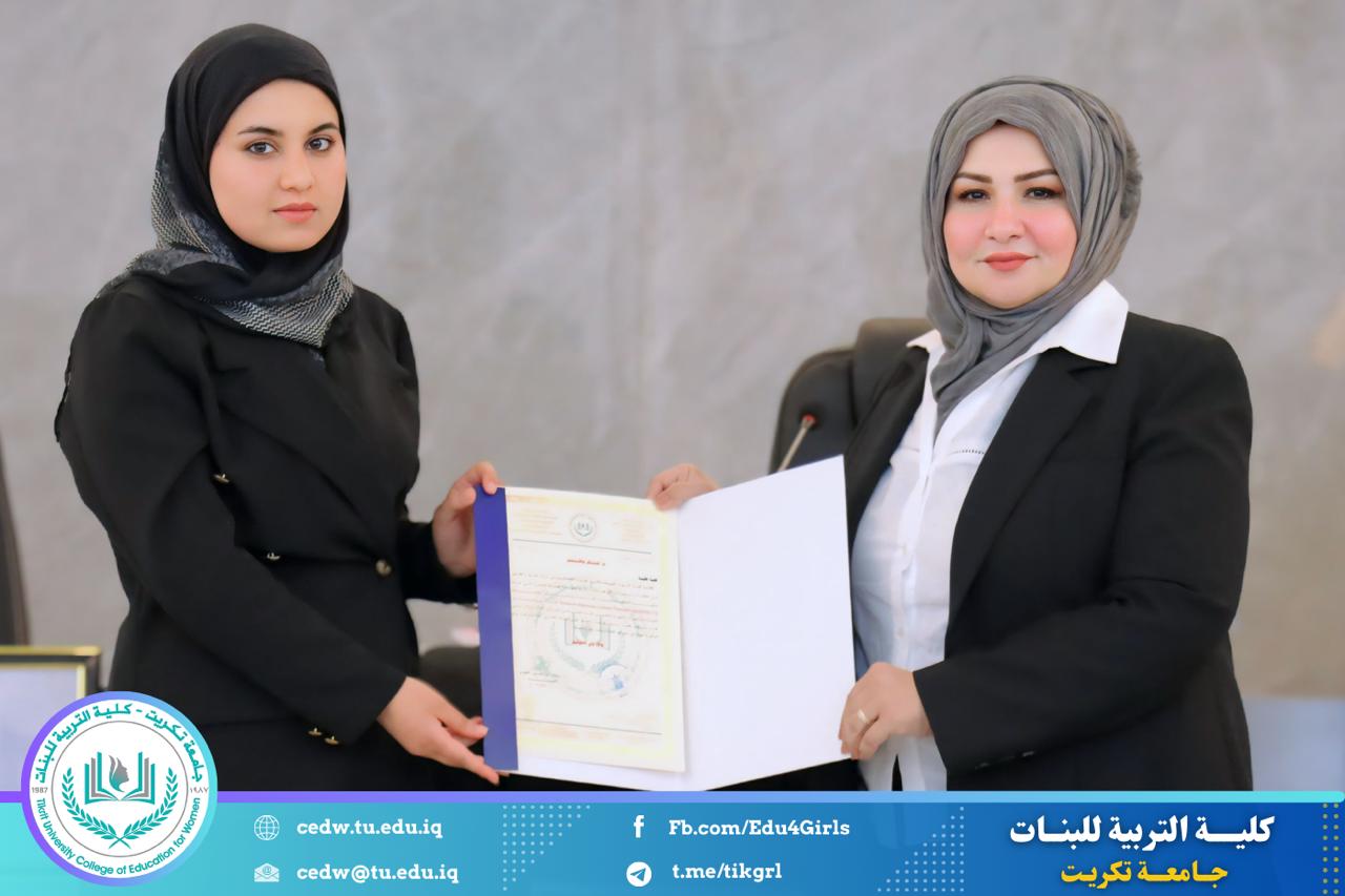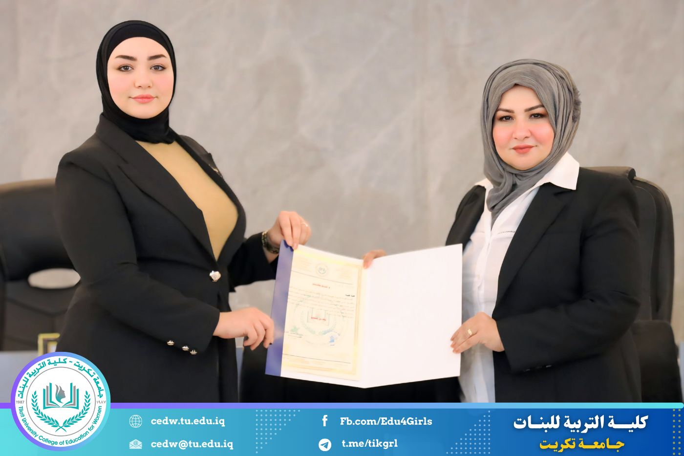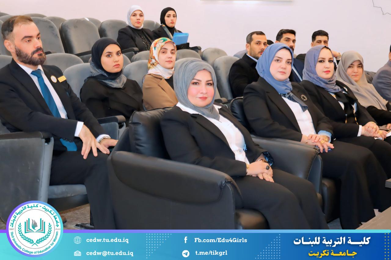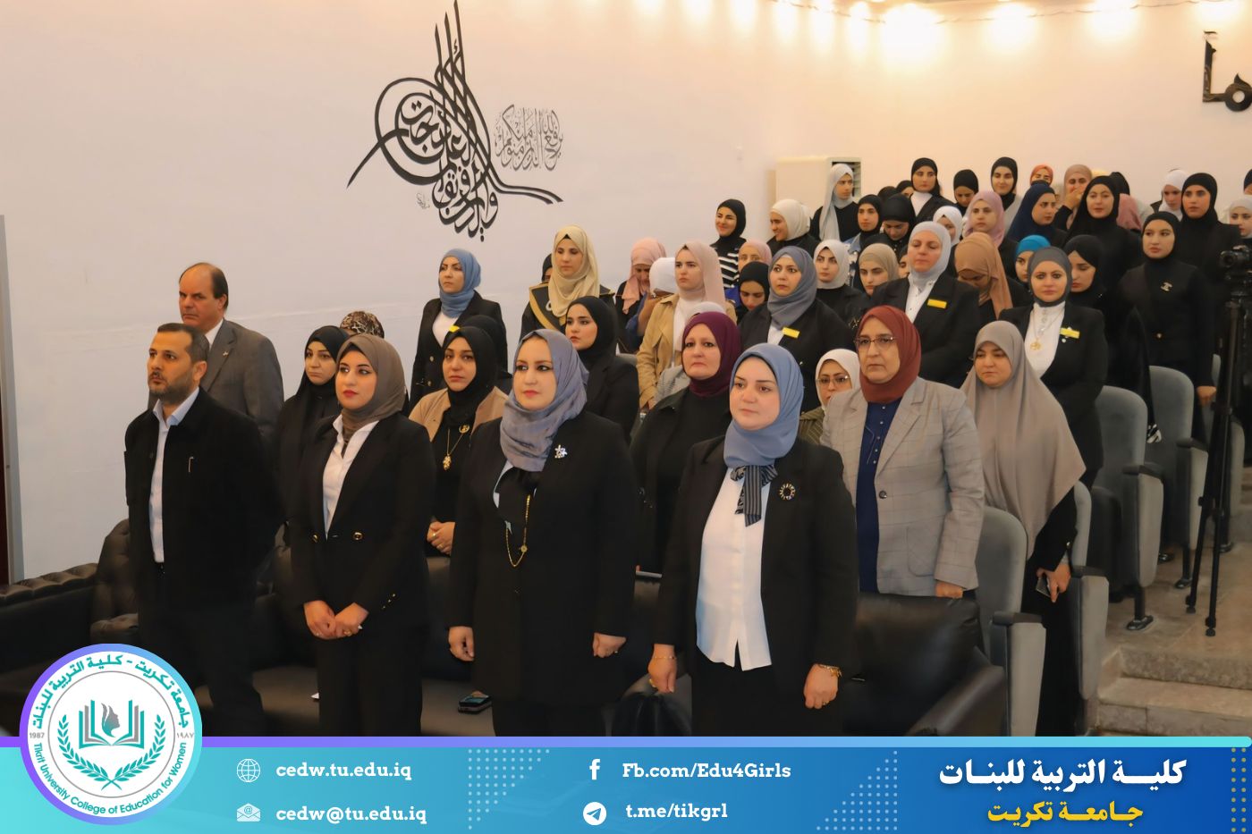 برعاية السيد رئيس جامعة تكريت الأستاذ الدكتور وعد محمود رؤوف، وبإشراف السيدة عميد كلية التربية للبنات الأستاذ الدكتورة نجلاء عبدالحسين عليوي، وبحضور السيد معاون رئيس الجامعة للشؤون العلمية الأستاذ الدكتور حسن حسين إبراهيم، والسيد مدير قسم الدراسات والتخطيط في جامعة تكريت الأستاذ الدكتور صالح حسن عبد الله، عقدت كلية التربية للبنات صباح اليوم الأربعاء الموافق ١١ آذار ٢٠٢٦ مؤتمرها العلمي السابع عشر لمناقشة بحوث التخرج لطلبة المرحلة الرابعة، وذلك على قاعة المرحوم الأستاذ الدكتور جايد زيدان، وتحت شعار (بحوث التخرج – دفعة رائدات المعرفة).