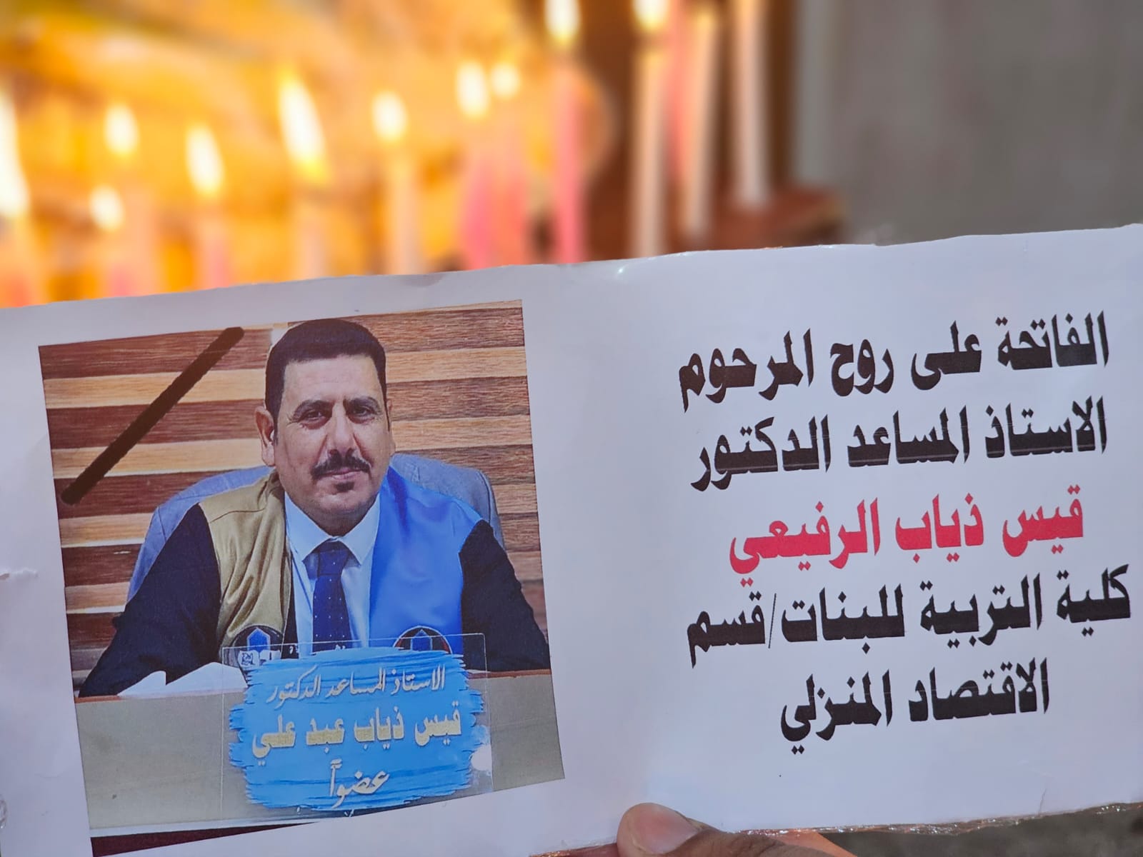 تحت اشراف السيدة عميد كلية التربية للبنات الاستاذ الدكتورة نجلاء عبدالحسين عليوي أقام قسم الاقتصاد المنزلي في الكلية وبمتابعة السيدة رئيس قسم الإقتصاد المنزلي السيدة م. شهد خالد حميد وبمشاركة الدكتورة اكيمة مسؤولة الأقسام الداخلية ، في أجواء يسودها الحزن والرحمة مجلس ثواب وختمة قرآنية على روح المغفور له بإذن الله الدكتور قيس ذياب الرفيعي، أحد أعمدة الكلية وأساتذتها المتميزين، الذي وافته المنية مؤخرًا. وذلك استذكارًا لسيرته العطرة وتخليدًا لذكراه الطيبة