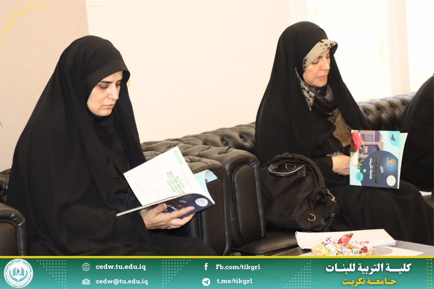 أستقبلت السيدة عميد كلية التربية للبنات الاستاذ الدكتورة نجلاء عبدالحسين عليوي بحضور السيد رئيس جامعة تكريت الاستاذ الدكتور وعد محمود رؤوف والسيد مساعد العميد للشؤون العلمية الاستاذ الدكتور حسن ابراهيم محمد الوفد العلمي الزائر من جامعة السيدة معصومة ( عليها السلام) من الجمهورية الإسلامية الإيرانية في اليوم الاربعاء الموافق 15/ 1/ 2025 حيث تمثل الوفد بالسيدة رئيس الجامعة الاستاذ الدكتورة مريم بردابار ، والأستاذ الدكتورة فائزة اركان مسؤولة العلاقات الدولية ، والاستاذ الدكتور محمد امين تدريسي في جامعة السيدة معصومة (عليها السلام) ، والسيدة رئيس جامعة التقنية الشمالية الاستاذ الدكتورة علياء عباس علي العطار ، لمناقشة سبل الارتقاء بالواقع الاكاديمي للجامعتين و للإطلاع على واقع كلية التربية للبنات وما تحتويه من مختبرات تعليمية وقاعات دراسية ووسائل تعليمية متطورة ونظم التعليم وايضاً كانت هناك جولة تفقدية في جميع اروقة الكلية