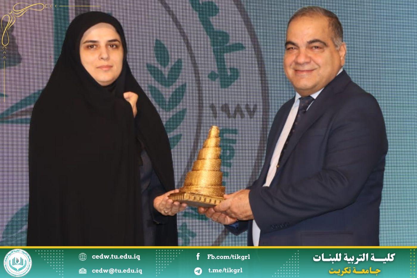 وفي ختام الزيارة، كرمت الدكتورة نجلاء المحمداوي الوفد الزائر بهدايا تقديرية ودروع ، وقد اهدت الدكتورة مريم الدكتورة نجلاء هدية تقديرية من صنع طالبات قسم الاقتصاد المنزلي في جامعة معصومة (عليها السلام) ، حيث أبدى الوفد وافر الشكر و الامتنان لكلية التربية للبنات ( جامعة تكريت) لمواقفها النبيلة و دعمها اللا متناهي للمسيرة التعليمية و الحركة الأكاديمية.