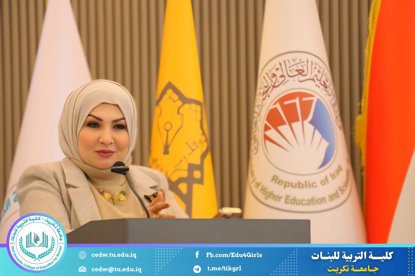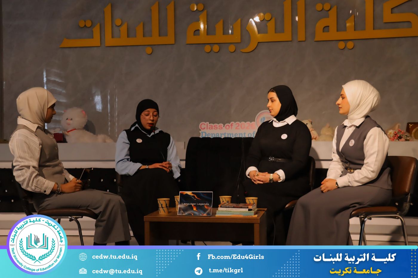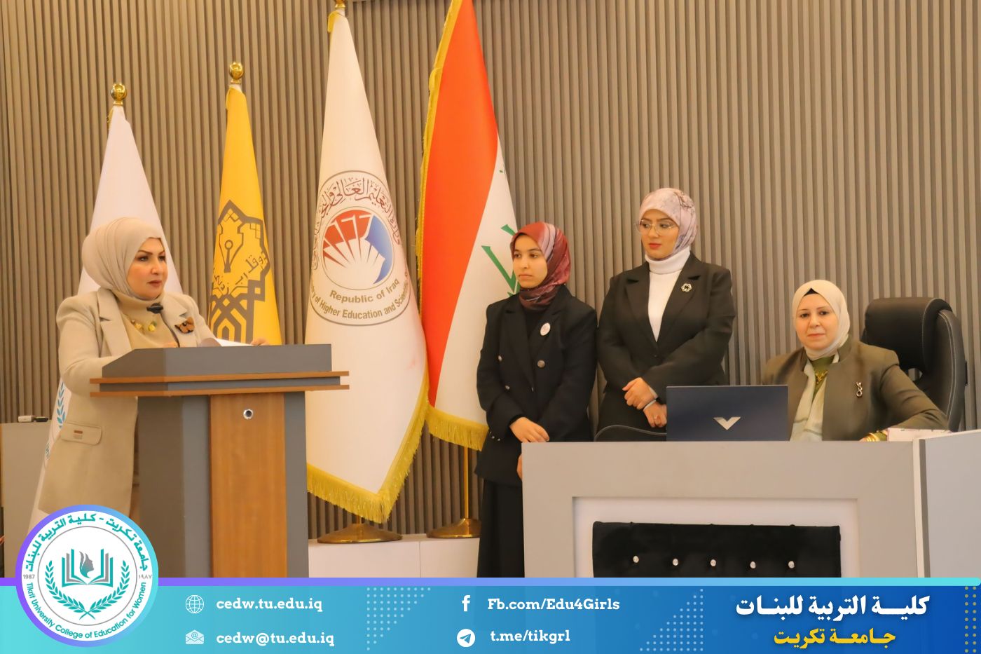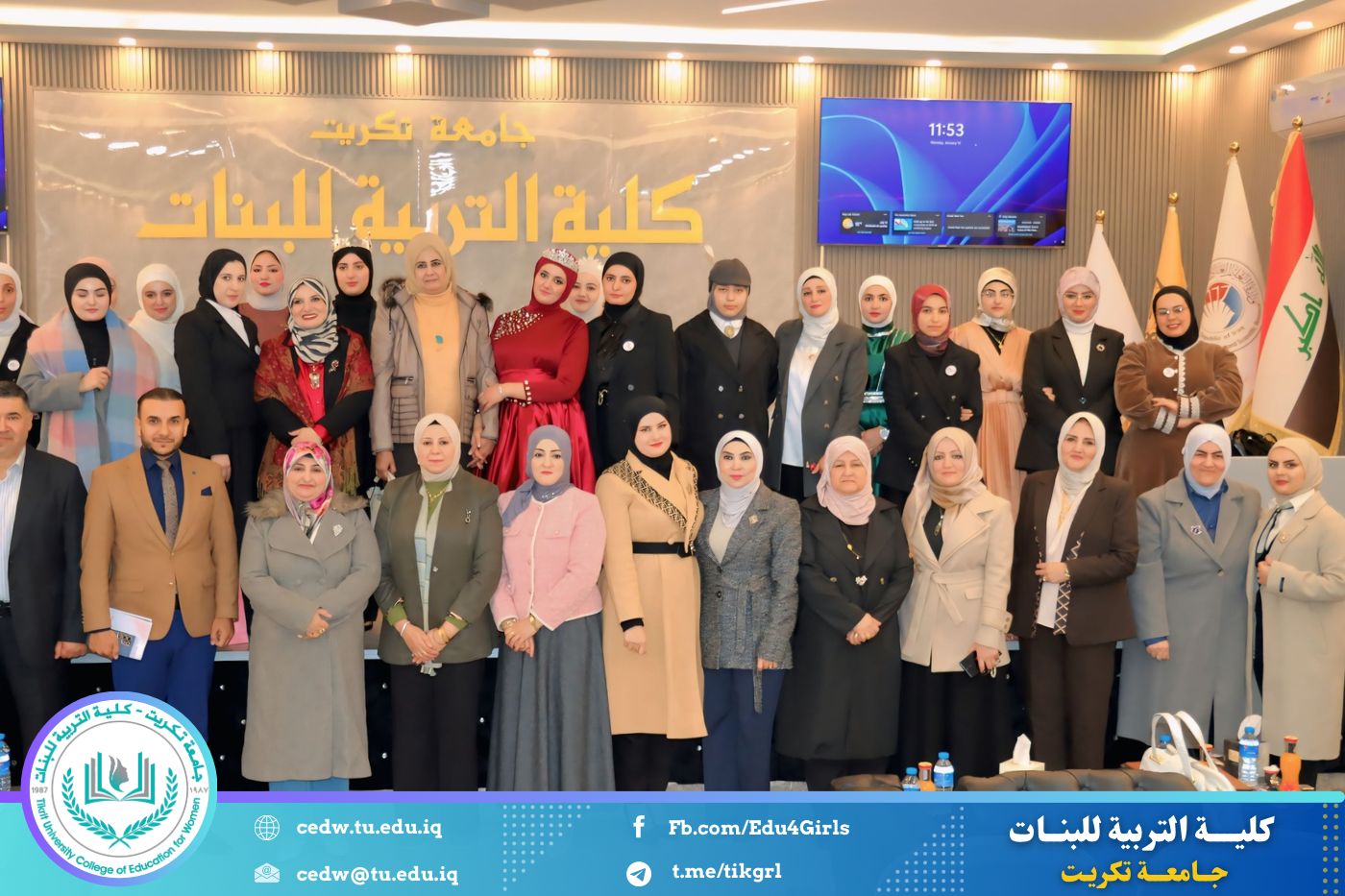 تحت شعار «رحلة نحو الإبداع والتميّز»، نظّم قسم اللغة الإنكليزية في كلية التربية للبنات – جامعة تكريت، صباح يوم الاثنين الموافق 12 / 1 / 2026، وعلى رحاب قاعة المرحوم الأستاذ الدكتور جايد زيدان، المهرجان الطلابي الثقافي الثاني للقسم، بحضور السيدة عميد كلية التربية للبنات الأستاذ الدكتورة نجلاء عبدالحسين عليوي، ومعاونتها للشؤون العلمية الأستاذ الدكتورة أشرف جمال محمود، ومعاونتها للشؤون الإدارية الأستاذ المساعد الدكتورة سلمى خالد ياسين، فضلًا عن عدد من السادة رؤساء الأقسام وأعضاء الهيئات التدريسية والطالبات.