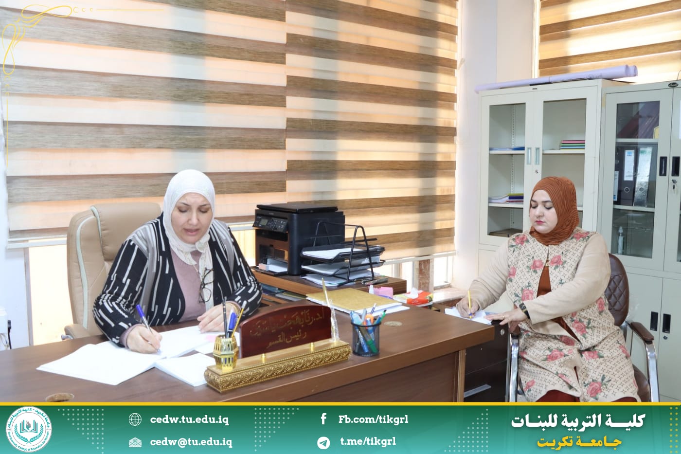 أقام قسم الرياضيات في كلية آلتربية للبنات اجتماعاً دورياً برئاسة السيدة رئيس قسم الرياضيات الاستاذ الدكتورة رنا بهجت ياسين وبحضور لجنة الدراسات العليا في اليوم الخميس الموافق 12/ 12/ 2024