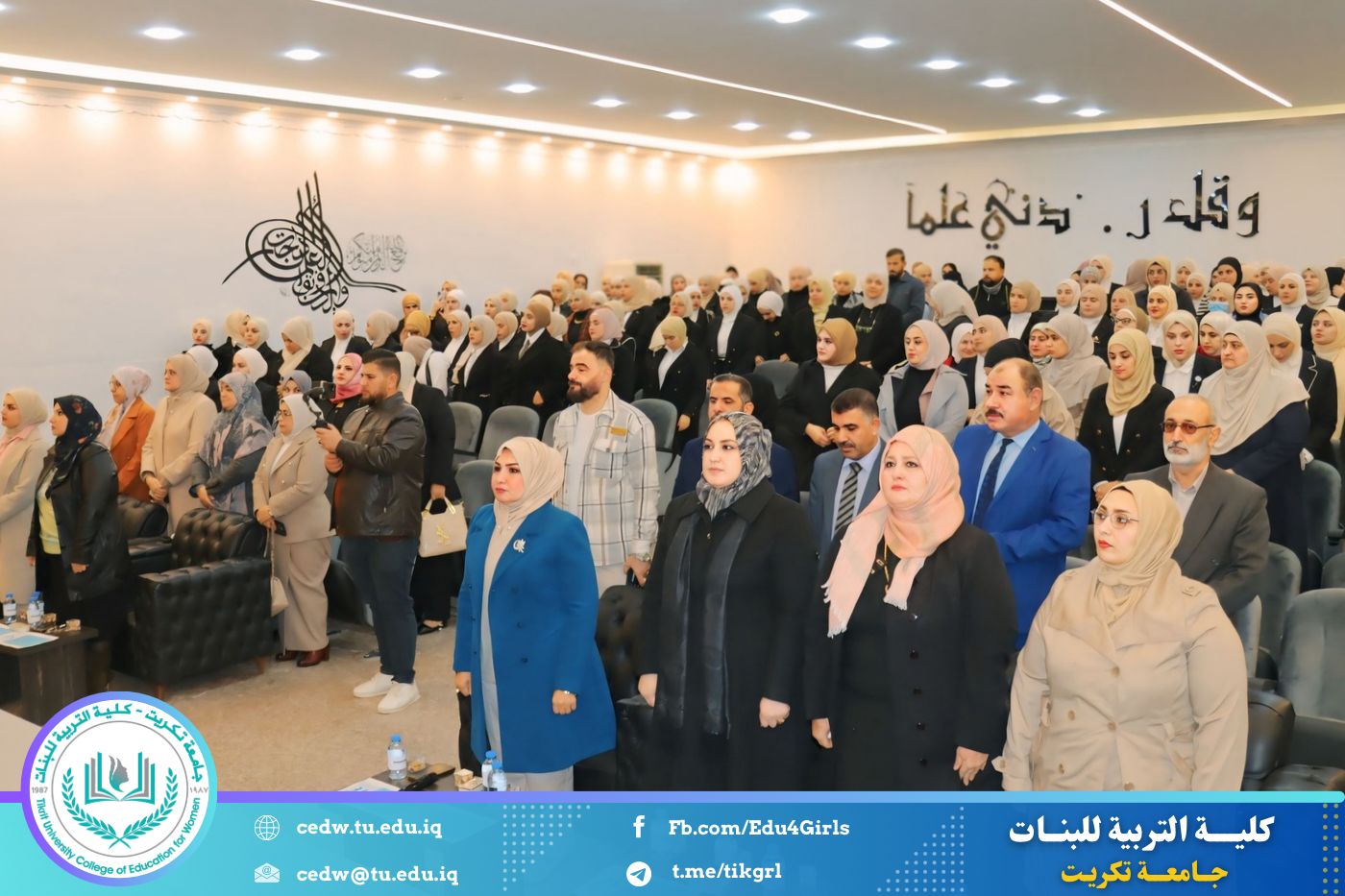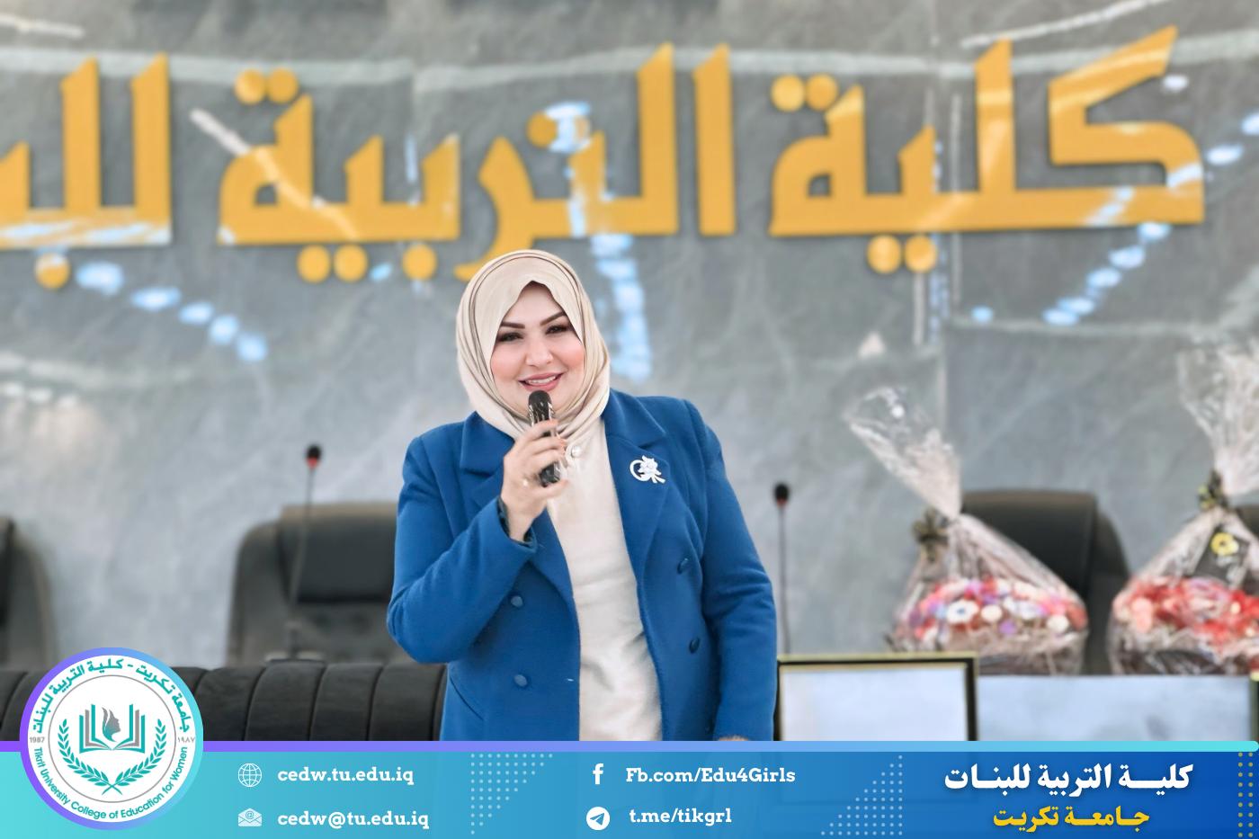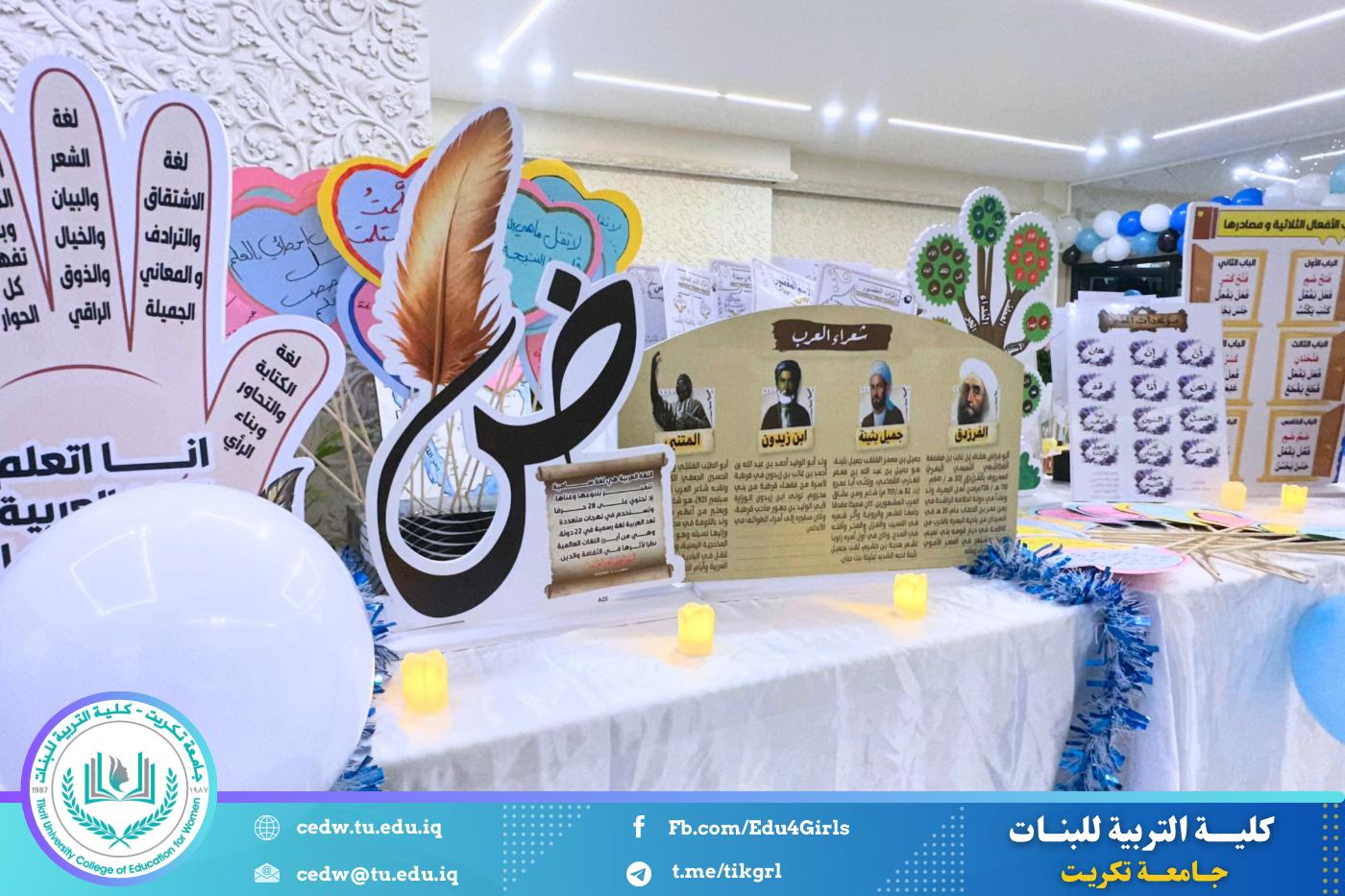 تحت شعار «تحيا الأمة بإحياء لغتها»، وبحضور السيدة عميد كلية التربية للبنات في جامعة تكريت الأستاذ الدكتورة نجلاء عبدالحسين عليوي، وبمشاركة معاون العميد للشؤون الإدارية الأستاذ الدكتورة سلمى خالد ياسين، وعدد من السادة رؤساء الأقسام والتدريسيين، نظّمت وحدة الإرشاد النفسي والتوجيه التربوي، بالتعاون مع قسم اللغة العربية، مهرجانًا ثقافيًا بمناسبة يوم الضاد، وذلك صباح يوم الثلاثاء الموافق ١٦ / ١٢ / ٢٠٢٥، على رحاب قاعة المرحوم الأستاذ الدكتور جايد زيدان.