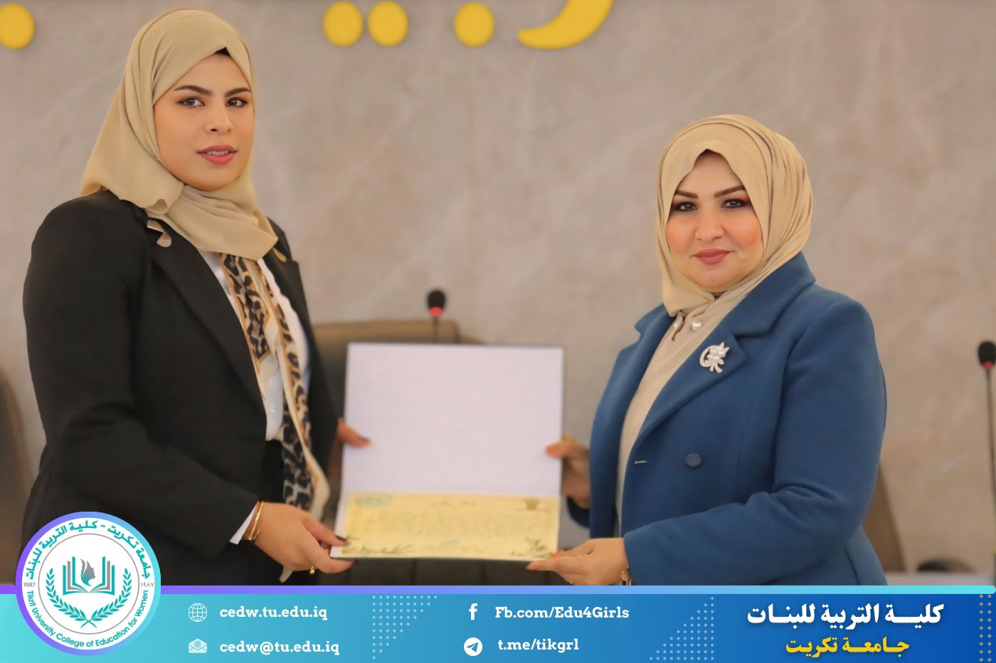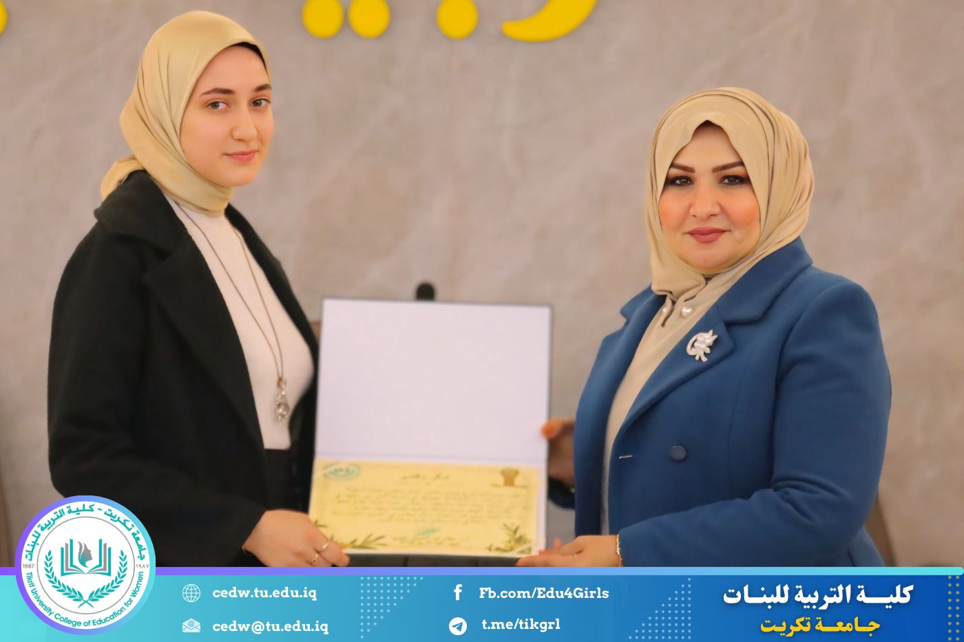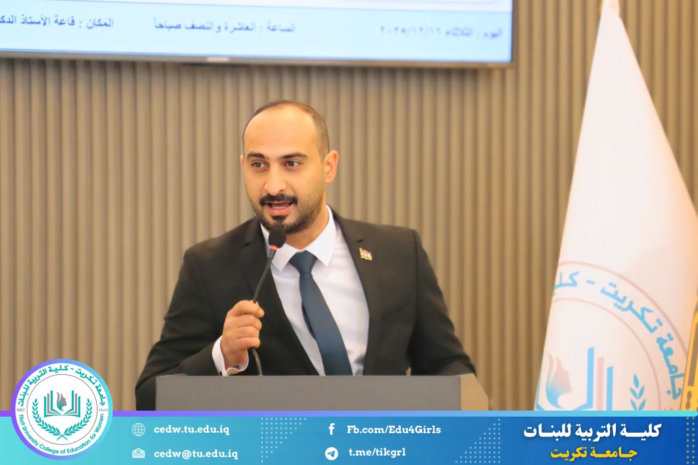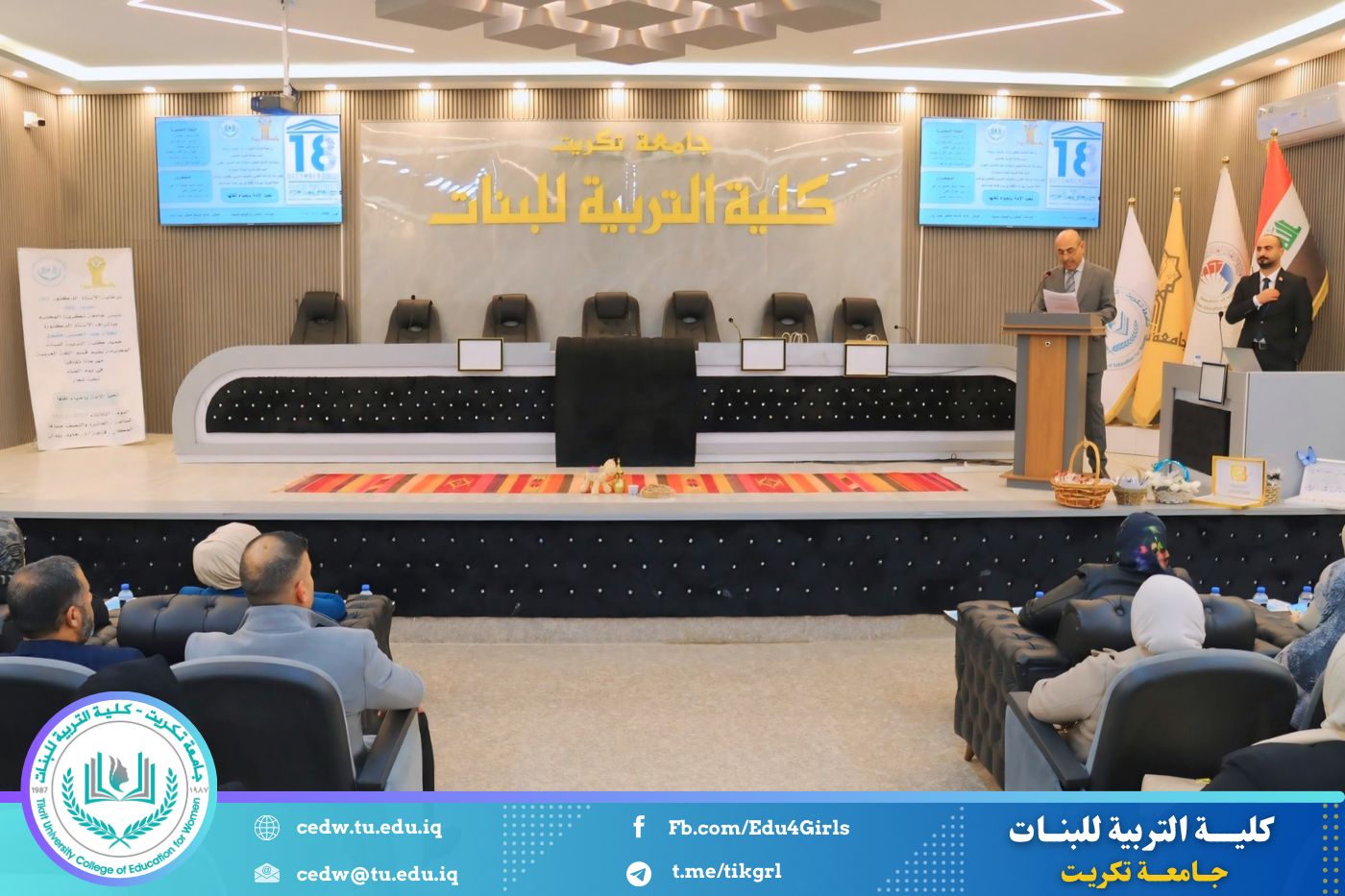 تحت شعار «تحيا الأمة بإحياء لغتها»، وبحضور السيدة عميد كلية التربية للبنات في جامعة تكريت الأستاذ الدكتورة نجلاء عبدالحسين عليوي، وبمشاركة معاون العميد للشؤون الإدارية الأستاذ الدكتورة سلمى خالد ياسين، وعدد من السادة رؤساء الأقسام والتدريسيين، نظّمت وحدة الإرشاد النفسي والتوجيه التربوي، بالتعاون مع قسم اللغة العربية، مهرجانًا ثقافيًا بمناسبة يوم الضاد، وذلك صباح يوم الثلاثاء الموافق ١٦ / ١٢ / ٢٠٢٥، على رحاب قاعة المرحوم الأستاذ الدكتور جايد زيدان.