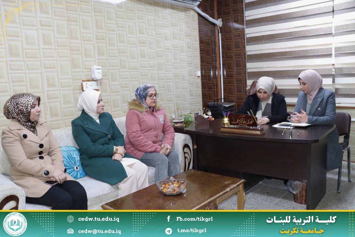 وفي ختام الاجتماع شكرت السيدة عميد الكلية رئيسة قسم الاقتصاد المنزلي وكادرها التدريسي على جهودهم المبذولة وروح التعاون فيما بينهم متمنيه لهم الموفقية والسداد في عملهم .