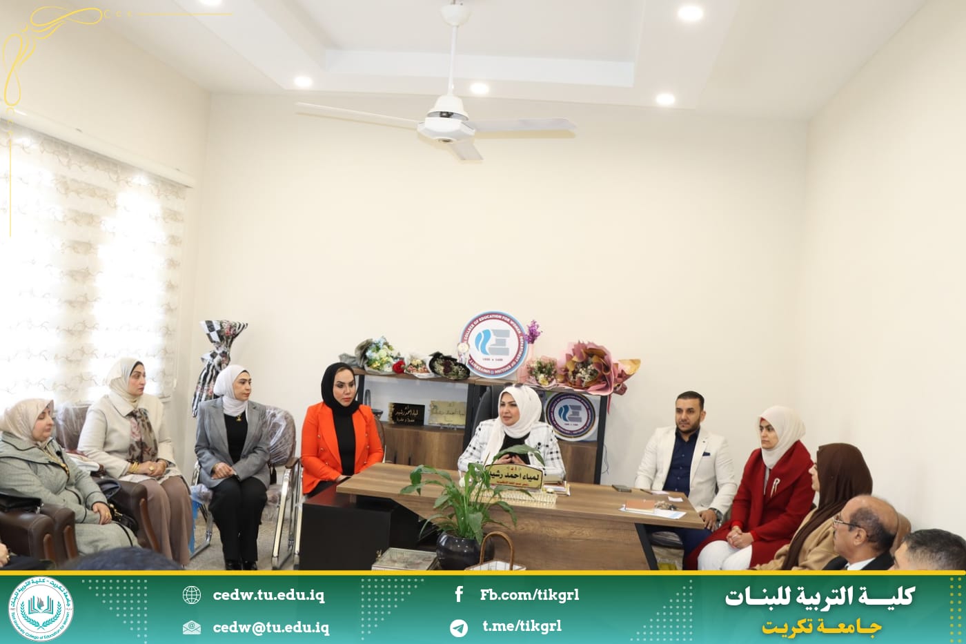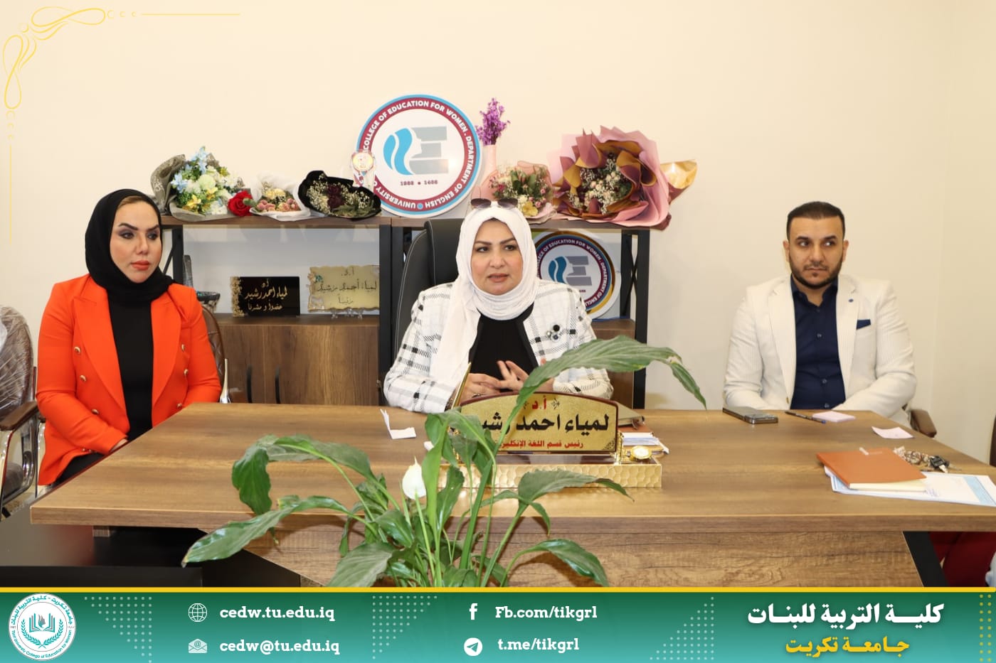 في بداية الاجتماع اشادت السيدة عميد الكلية بقسم اللغة الانكليزية بإعتباره ركيزة اساسية بين الاقسام العلمية في الكلية