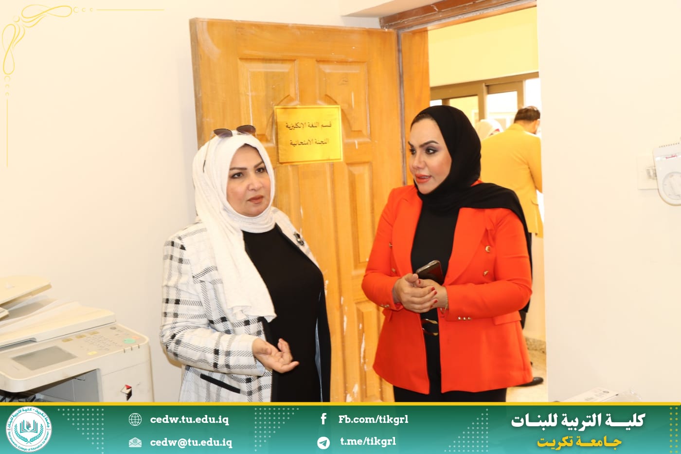 وبعد الاجتماع أجرت السيدة العميد جولة ميدانية للقاعات الدراسية لقسم اللغة الانكليزية وذلك لمتابعة مدى توفر البيئة التعليمية المناسبة داخل القاعات الدراسية والمستلزمات الضرورية وكافة الوسائل الاساسية الخاصة بالأمور التعليمية ، وفي ختام جولتها تقدمت بشكرها للكوادر التدريسية والمنتسبين وحثتهم على بذل المزيد من الجهد والمثابرة ، والحرص على رفع مكانة كلية التربية للبنات