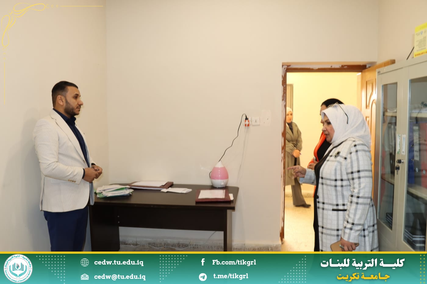 * متابعة اكمال صيانة الترميمات الأخيرة وإكمالها في بناية الجناح الاداري من أجل ارتقاء بمكانه الكلية