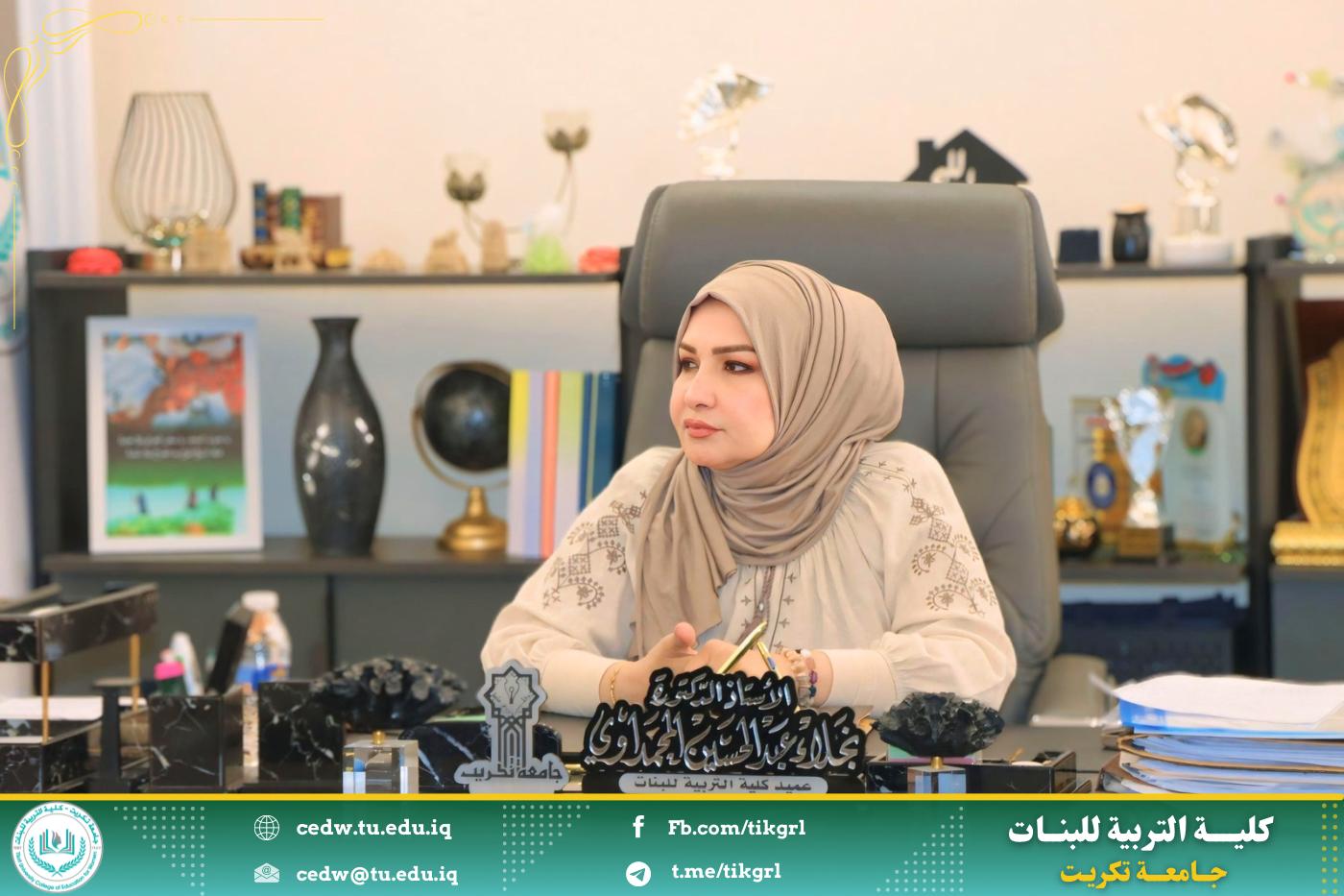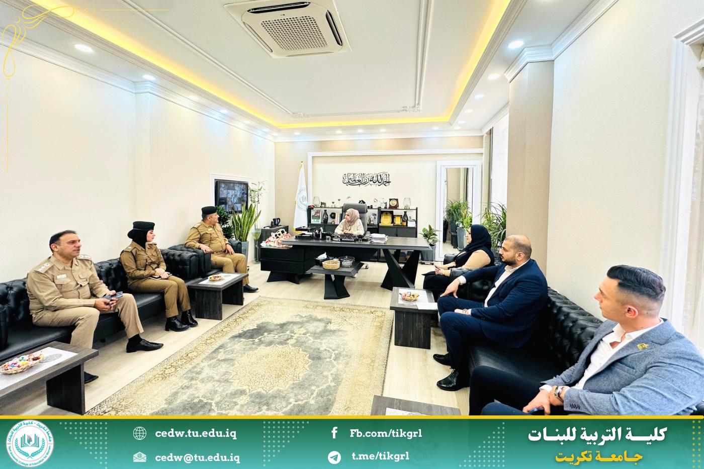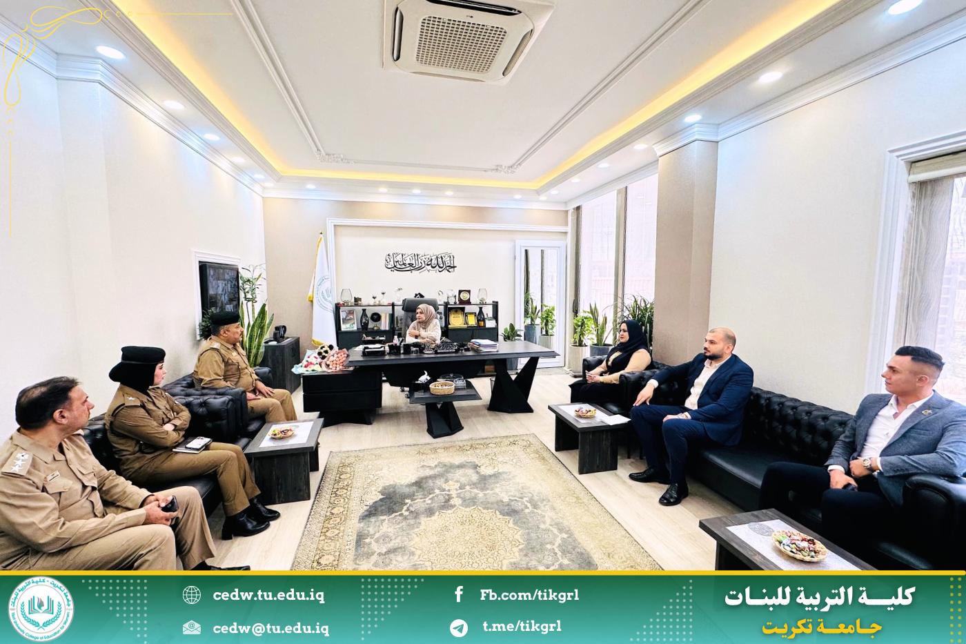 في سياق دعم تمكين المرأة وتوسيع أدوارها ضمن مؤسسات الدولة، استقبلت الأستاذ الدكتورة نجلاء عبدالحسين عليوي، عميدة كلية التربية للبنات، صباح اليوم الأربعاء الموافق ١٤ أيار ٢٠٢٥، وفداً من قسم شؤون المرأة في محافظة صلاح الدين، برفقة معاون العميد للشؤون الإدارية، الأستاذ المساعد الدكتورة سلمى خالد ياسين، وعدد من أعضاء الهيئة التدريسية.