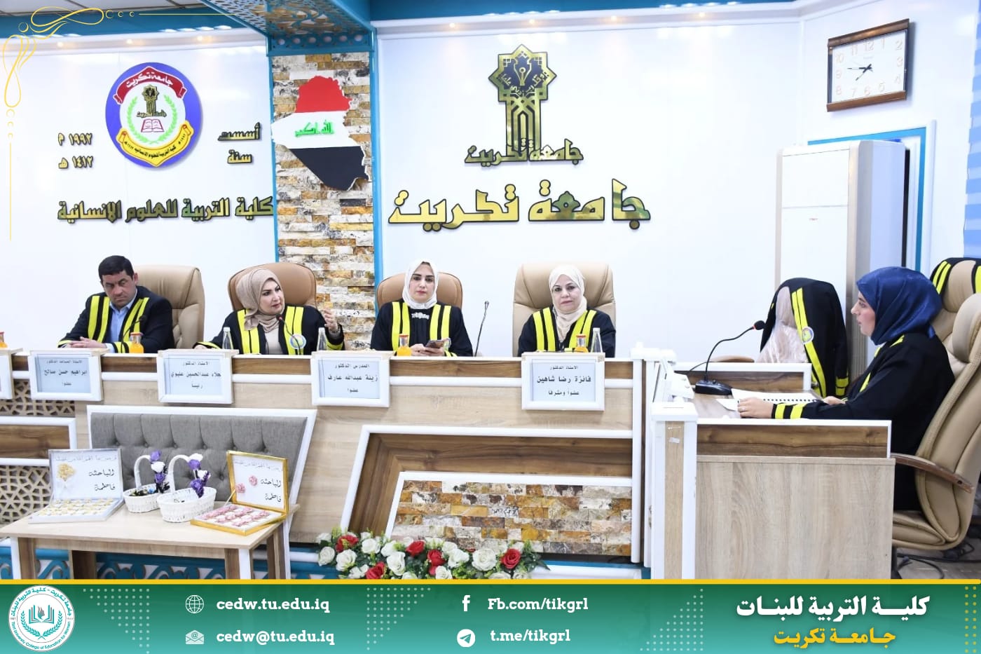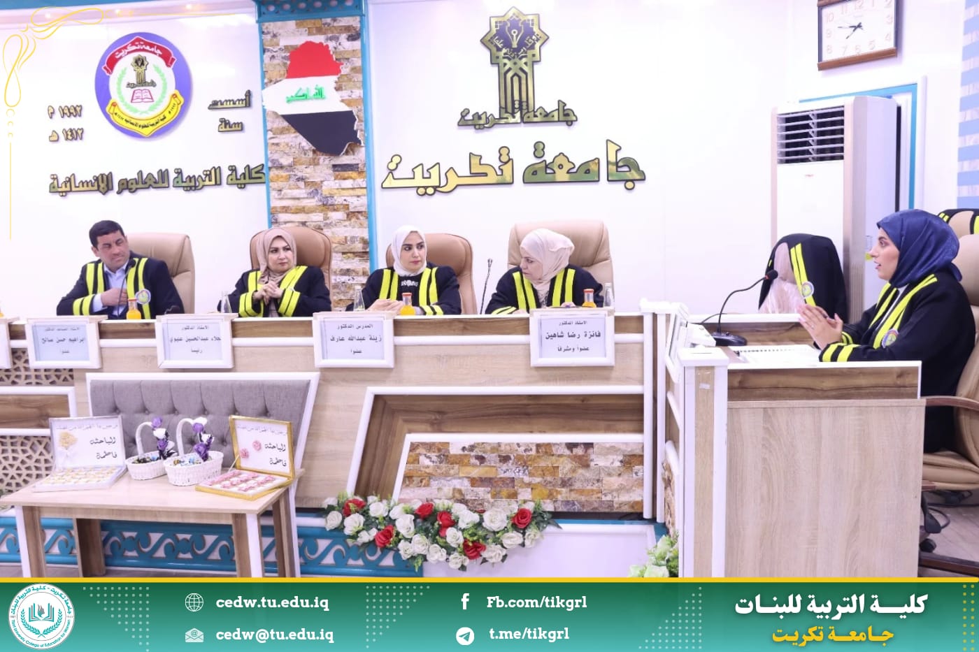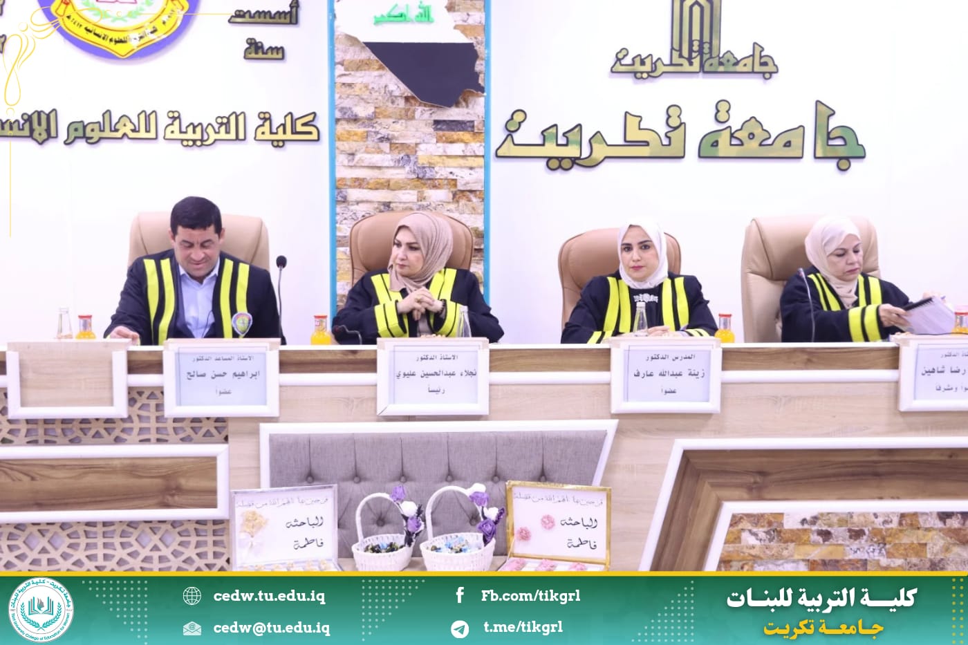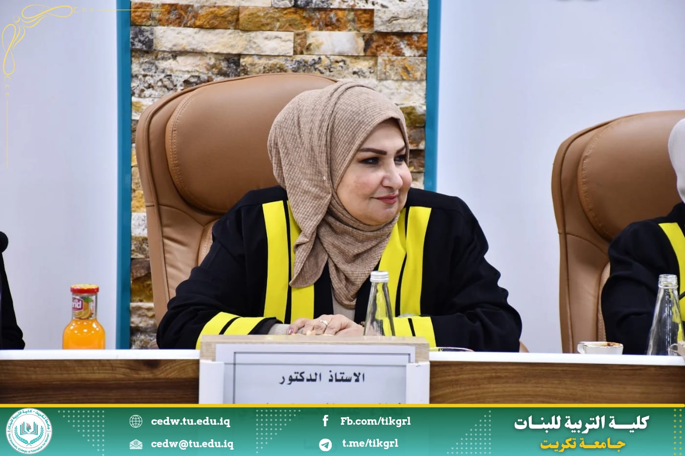 ترأست الأستاذ الدكتورة نجلاء عبدالحسين عليوي عميد كلية التربية للبنات / جامعة تكريت ، لجنة مناقشة رسالة ماجستير خارجية للطالبة ( فاطمة زاحم حارز ) في كلية التربية للعلوم الانسانية ، الموسومة (تجليات البداوة والحضارة في شعر ابن دراج القسطلي) ، والتي نوقشت صباح اليوم الثلاثاء الموافق ١٨ / ٢ / ٢٠٢٥ على رحاب قاعة كلية التربية للعلوم الإنسانية - جامعة تكريت